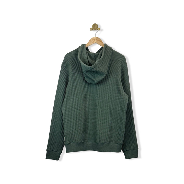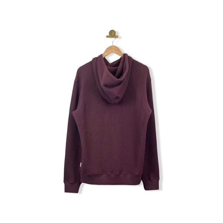 - This classic pullover hoodie gets a serious upgrade in our buttery-soft waffle-weave thermal knit. Complete with timeless touches: kangaroo pocket, ribbed cuffs & waist, and rubber-tipped drawcords. A cool-weather friendly style that looks great teamed with everything from denim to chinos to shorts.