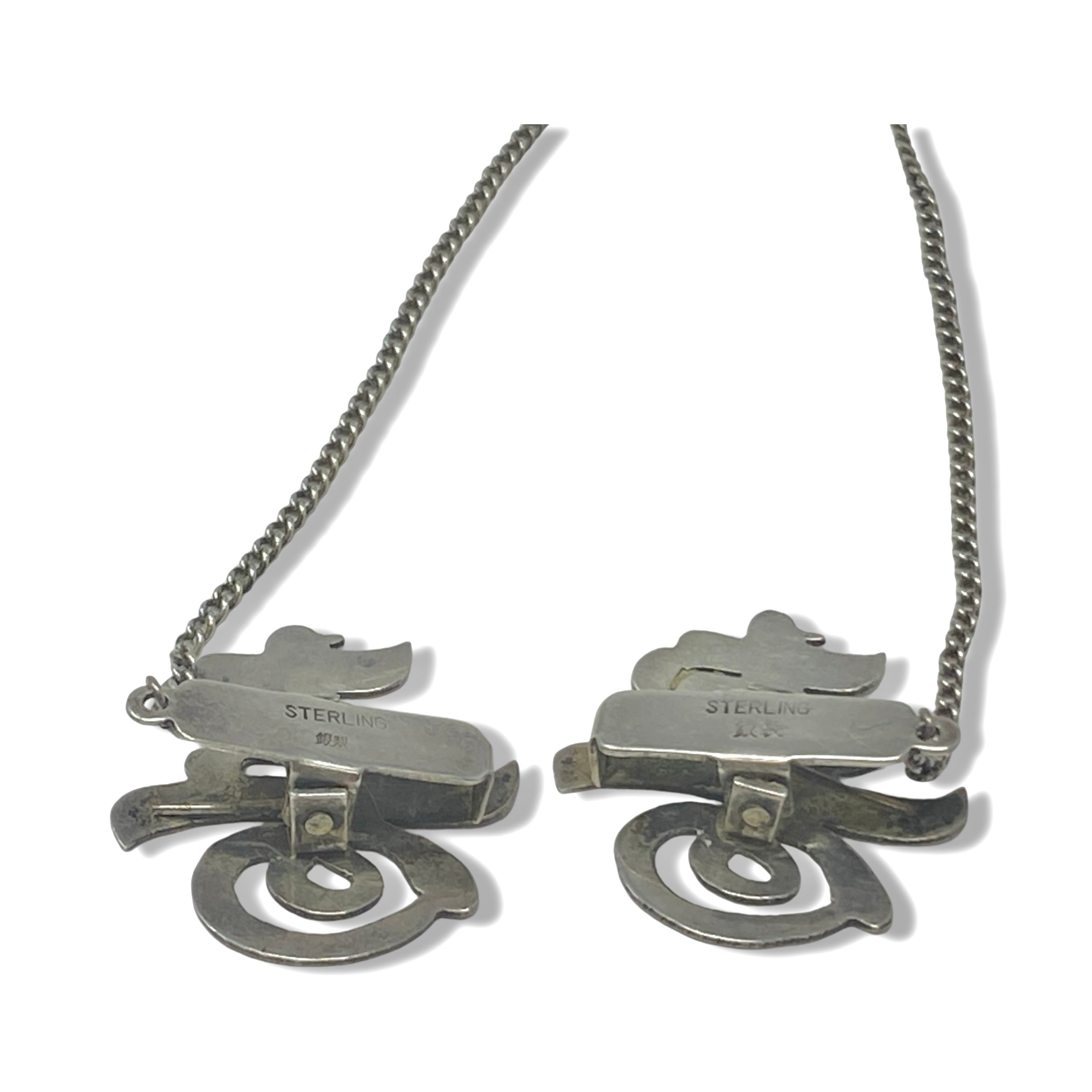 - Link chain collar clip with textured design throughout. Marked "STERLING"