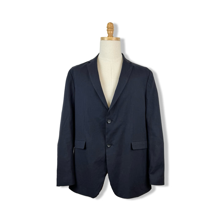 - Suit jacket with dual faux pockets. Labeled size 46; approx. size X-Large,