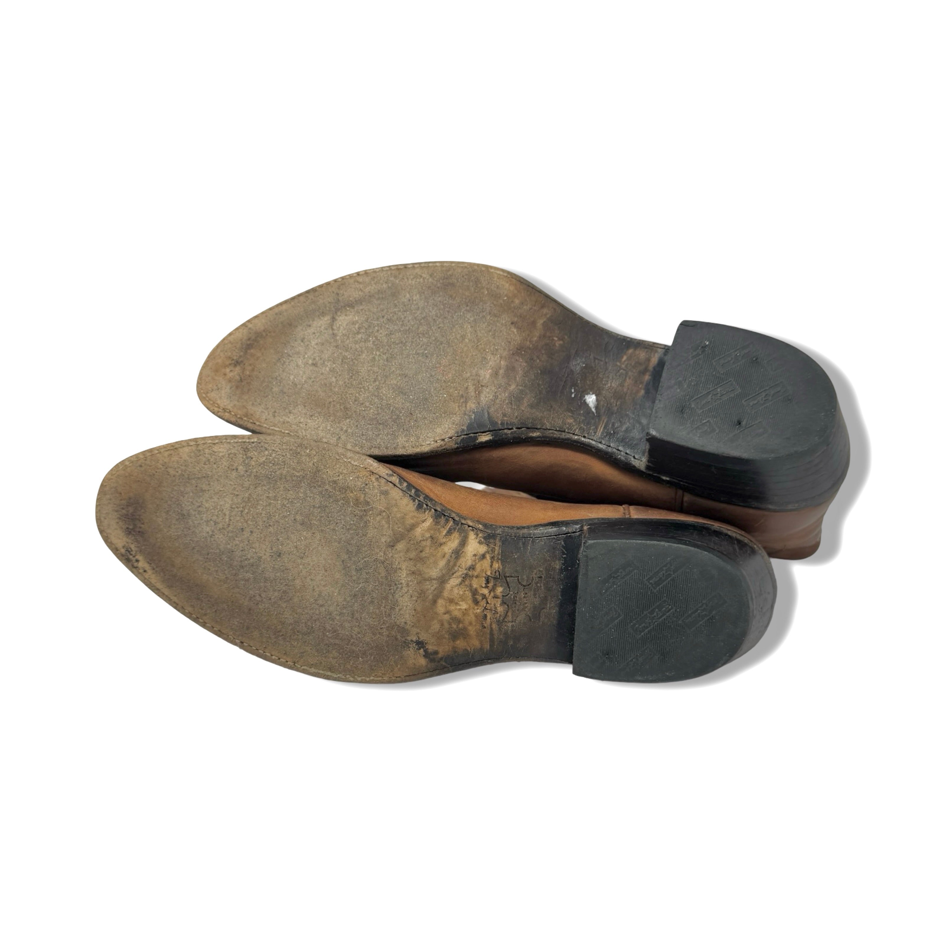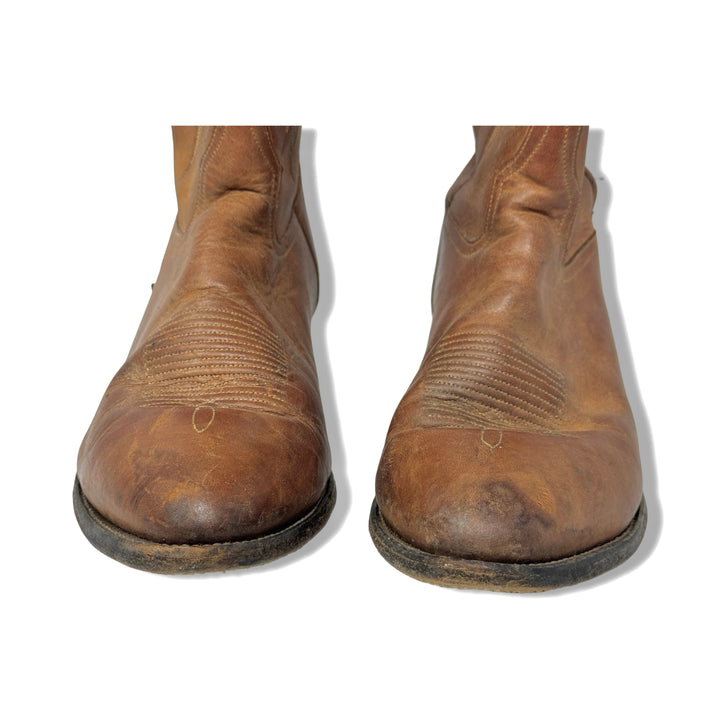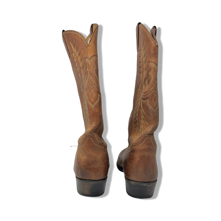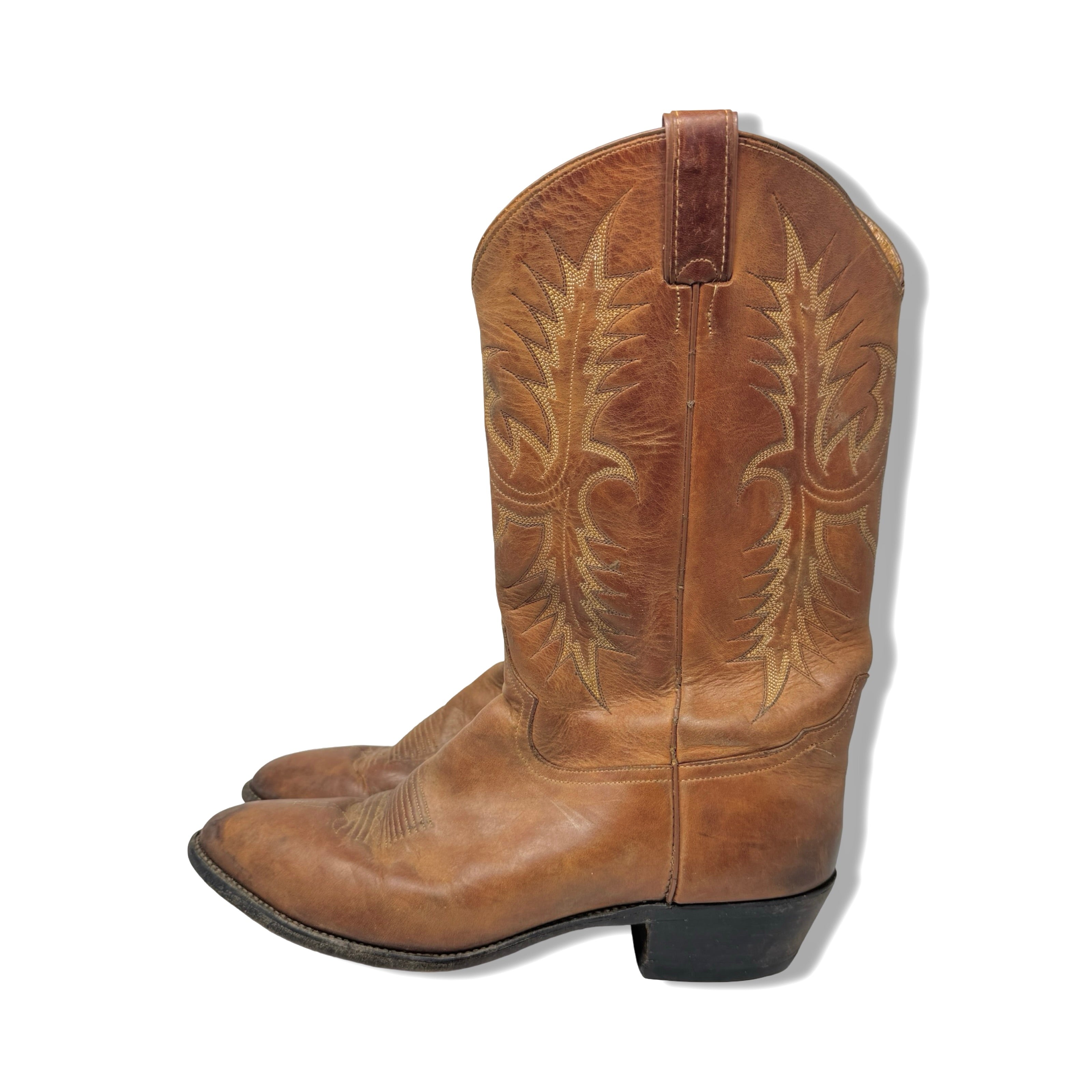 - Slip on cowboy boots with embroidered detail throughout. Some signs of wear.