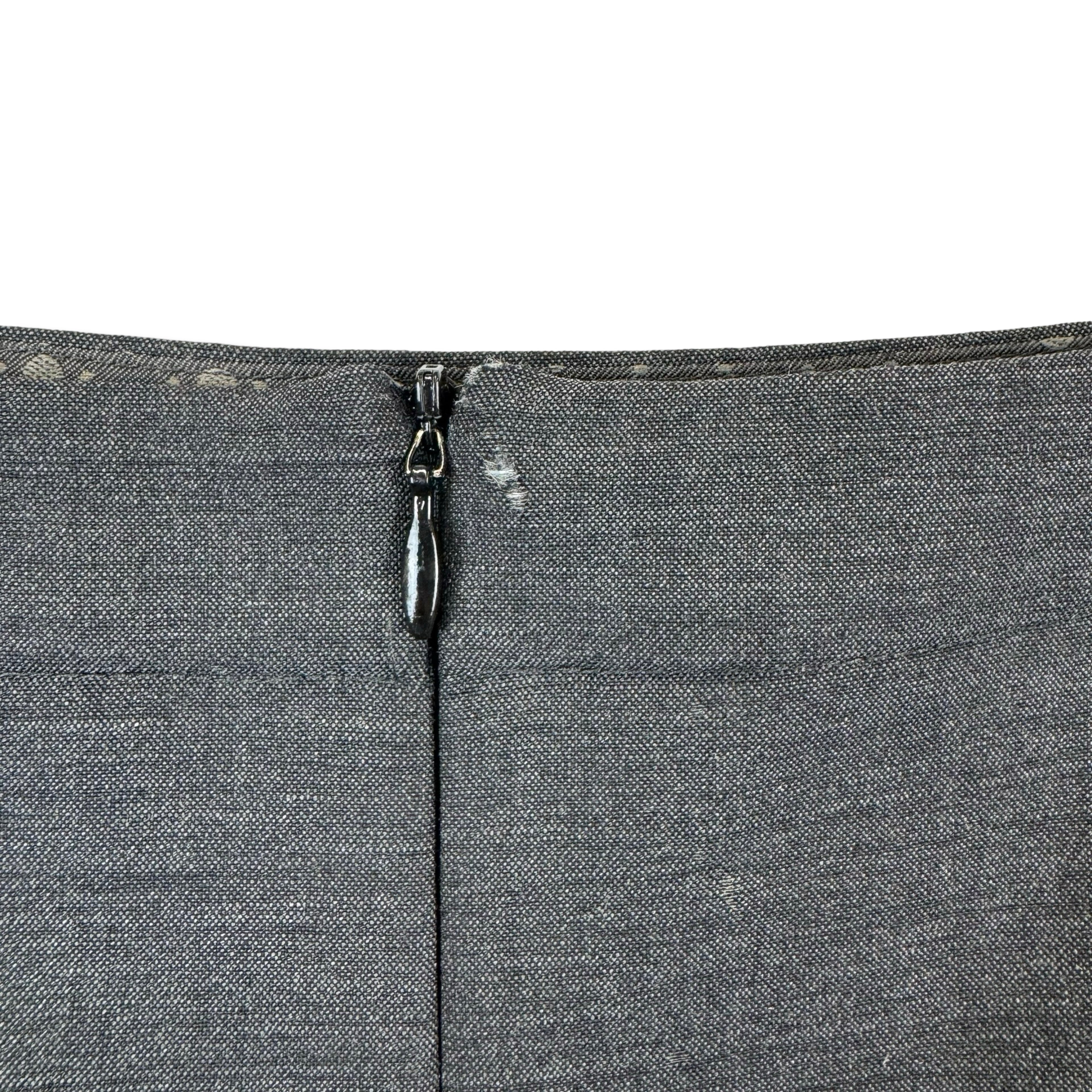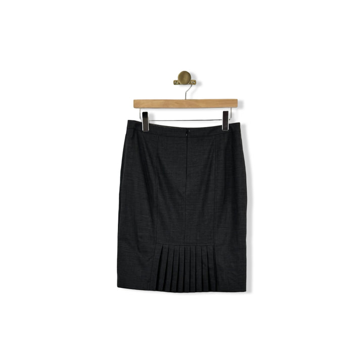 - Experience effortless style in this pleat detail midi skirt. Featuring dual faux front pockets, pleat detail on the back, and a sleek back zip closure, this skirt is the perfect addition to your wardrobe. Elevate your look with this versatile and chic piece. Signs of wear (pictured)