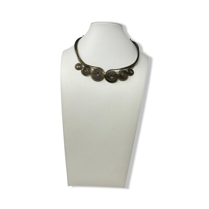 - Wire necklace with swirl detail.