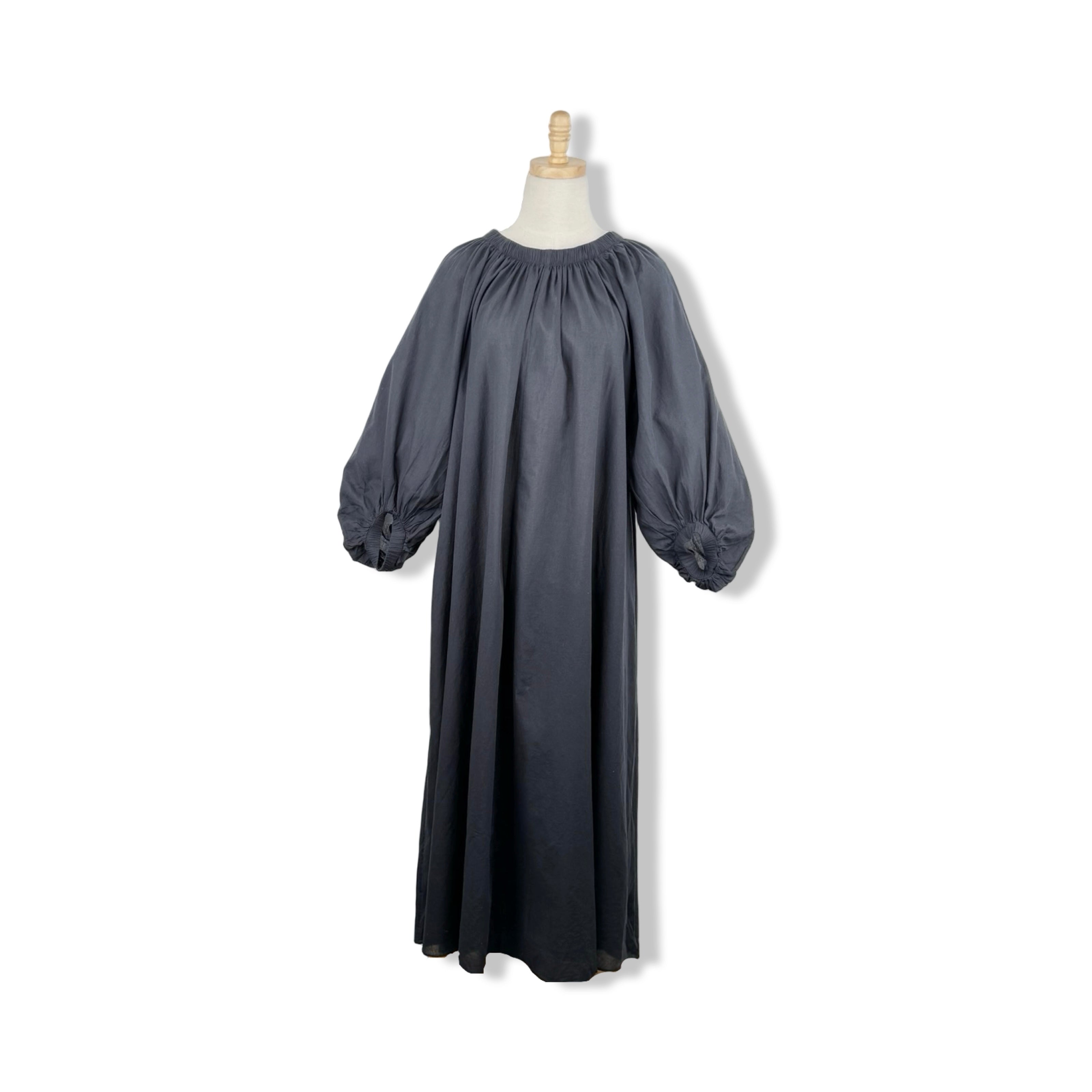 - Pull on flowy long sleeve maxi dress with elasticized neckline