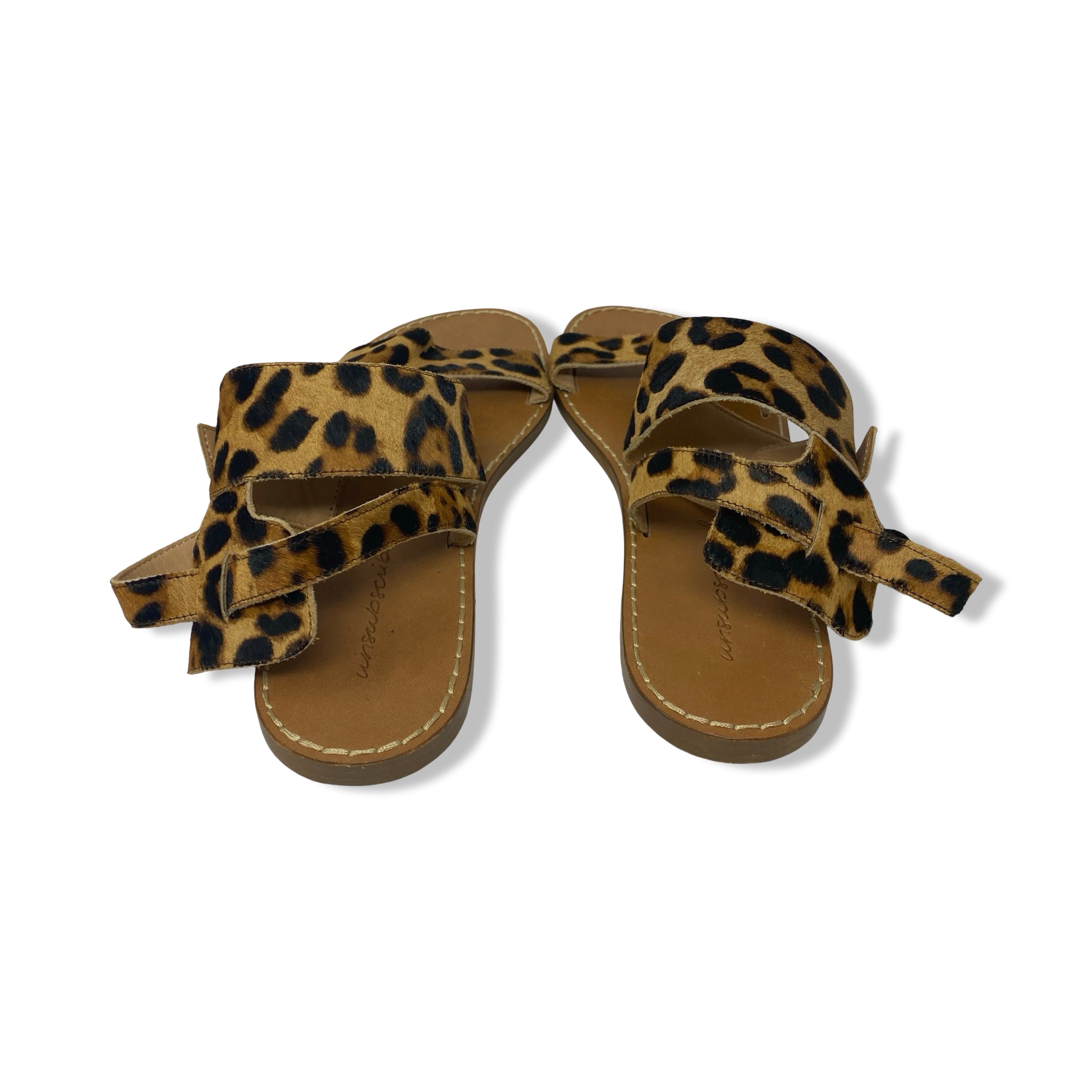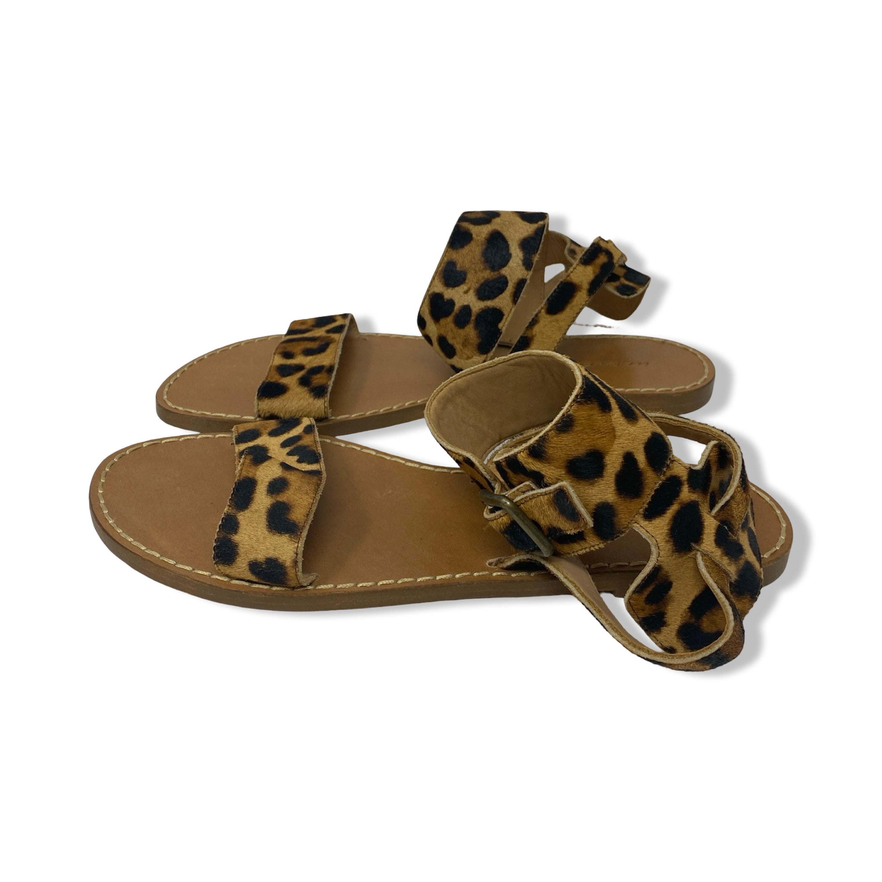 - Flat sandal with leopard print detail on straps and buckle strap closure