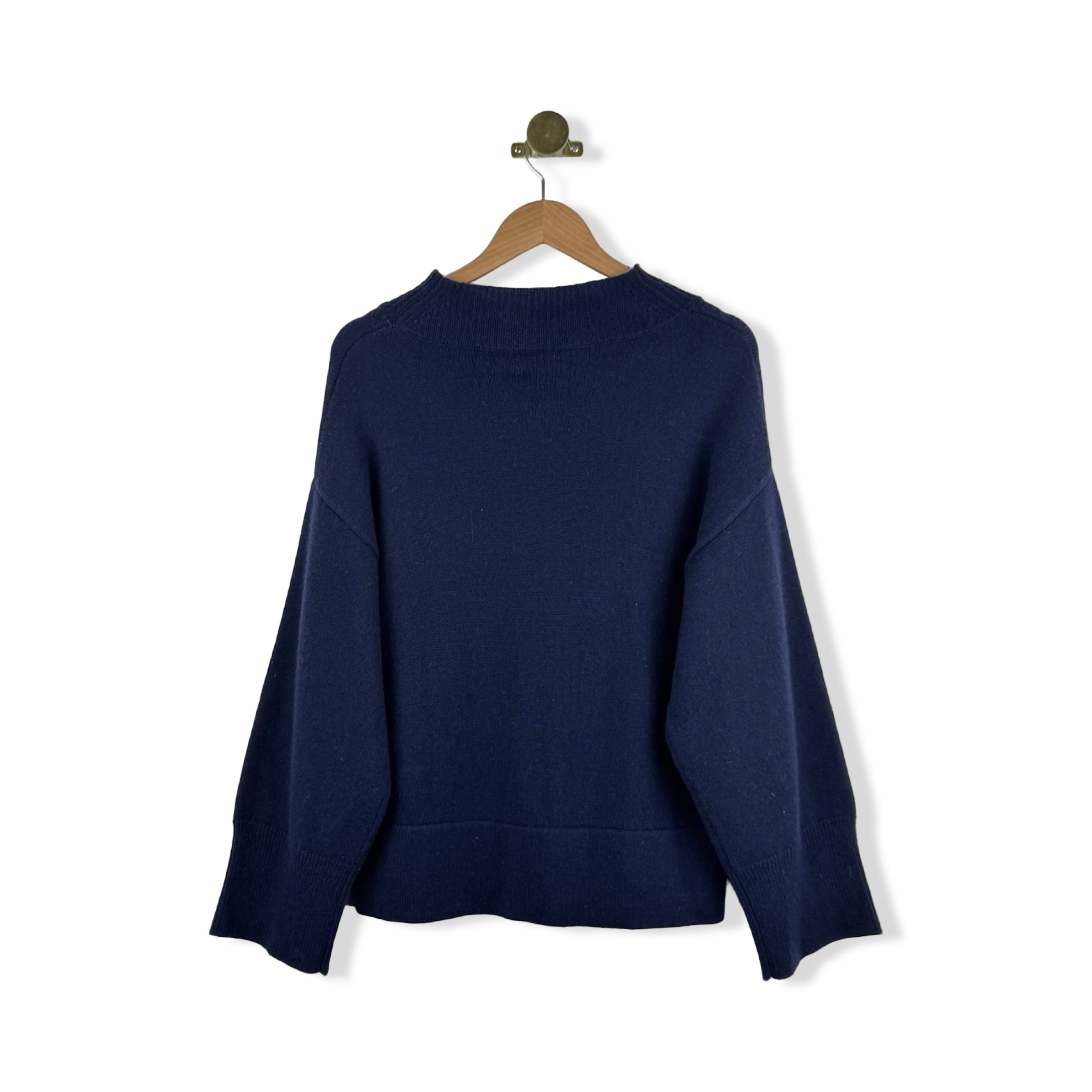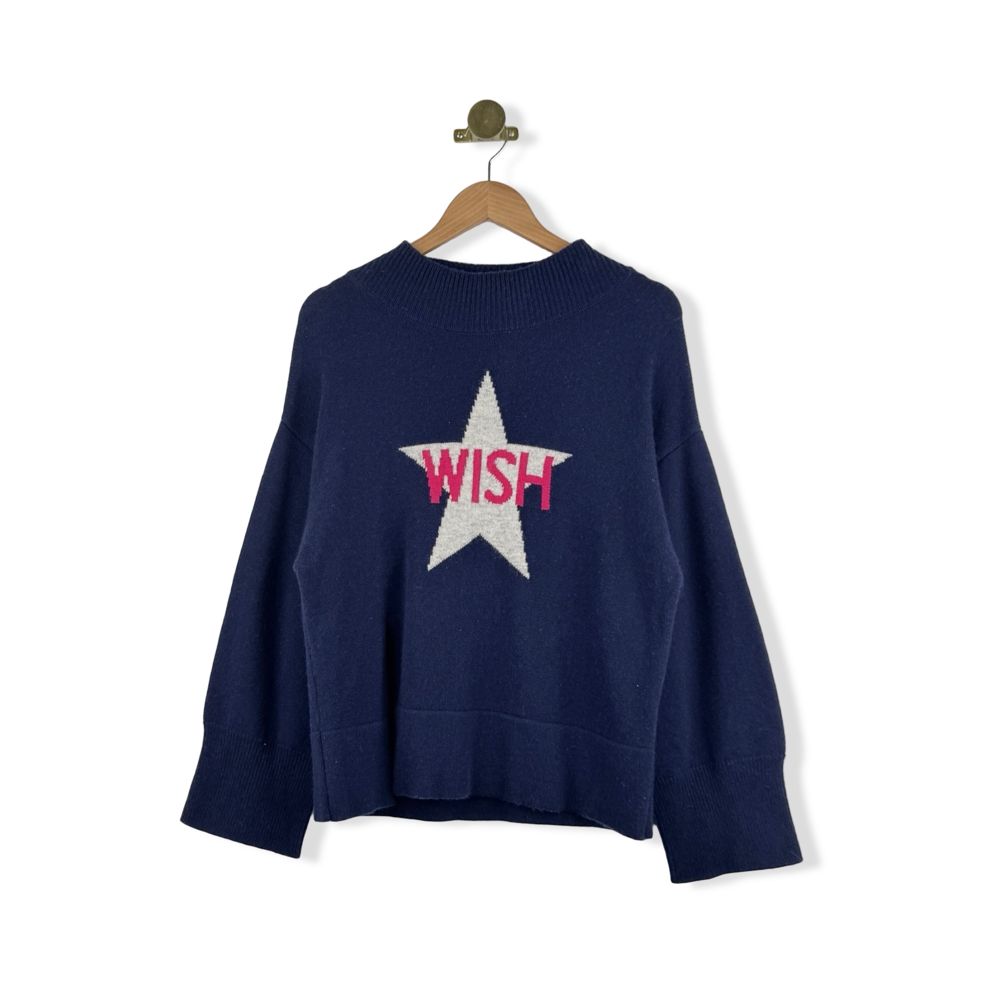 - Sweater with star graphic on front and slit detail on front. Size label missing, looks like Medium