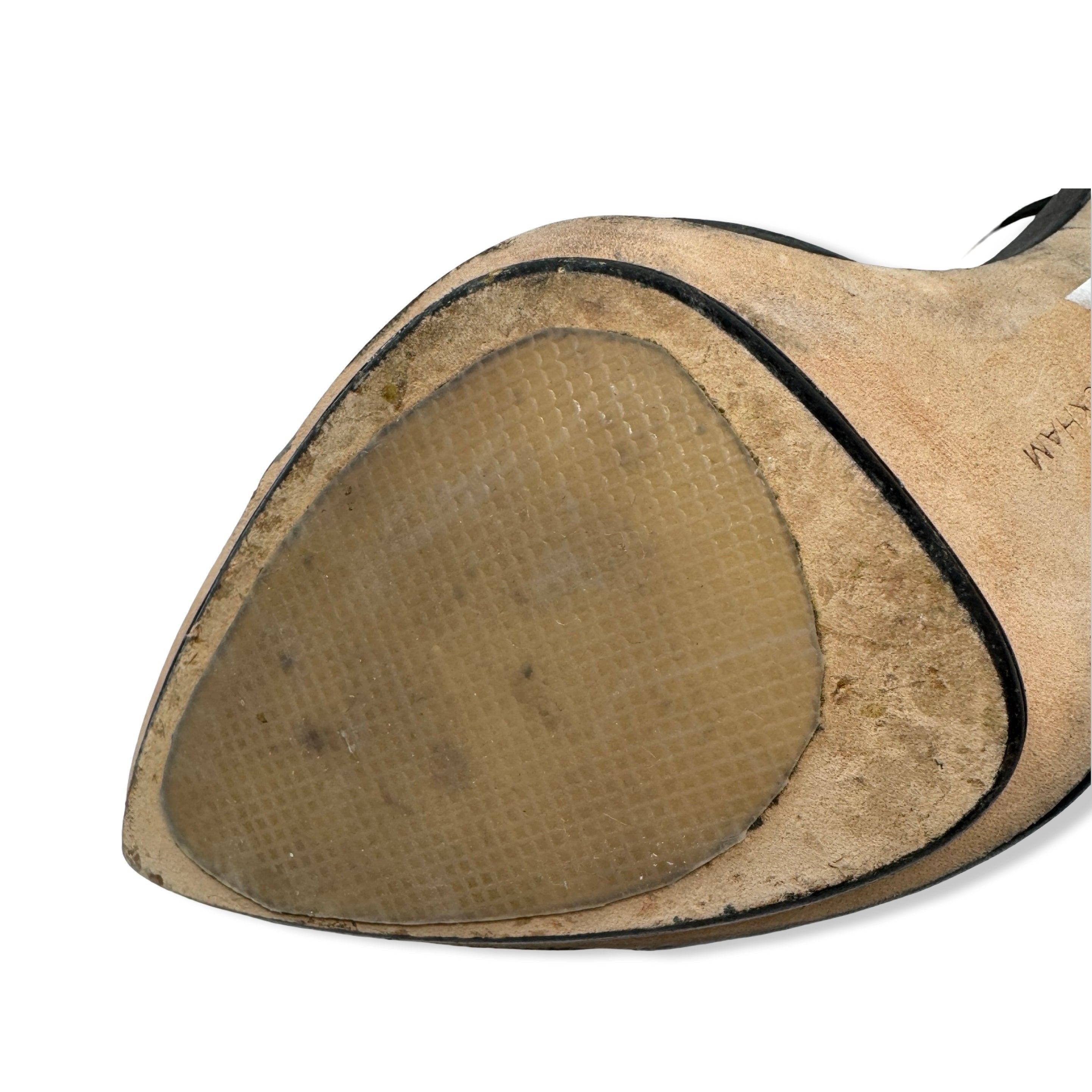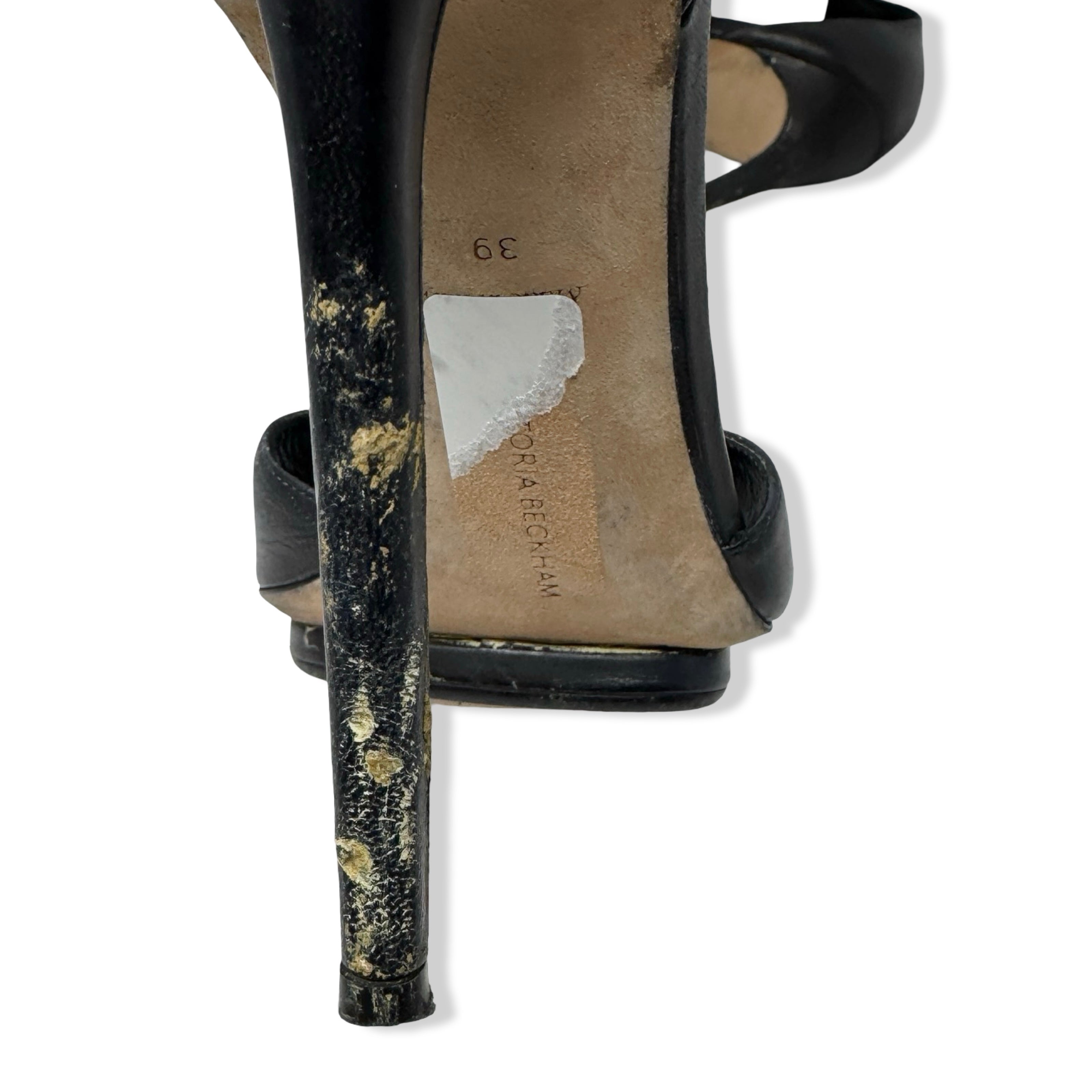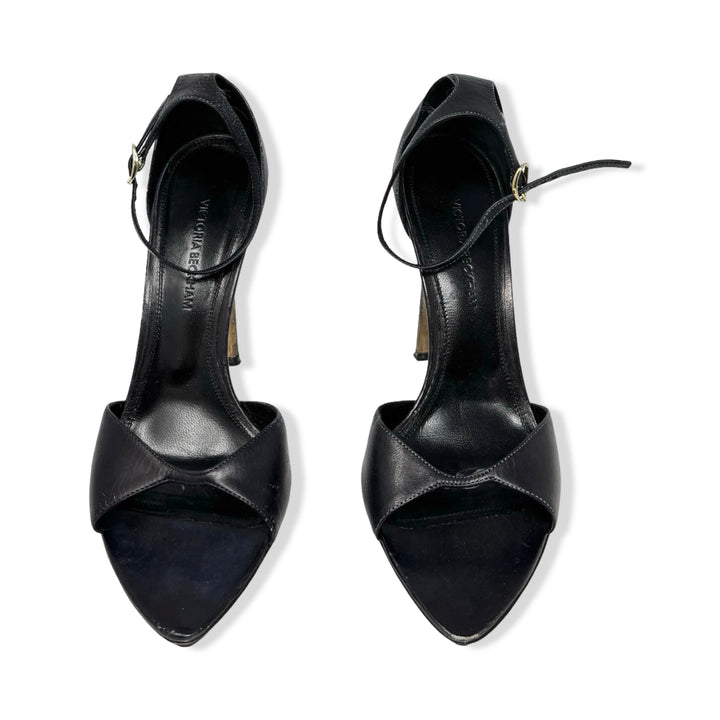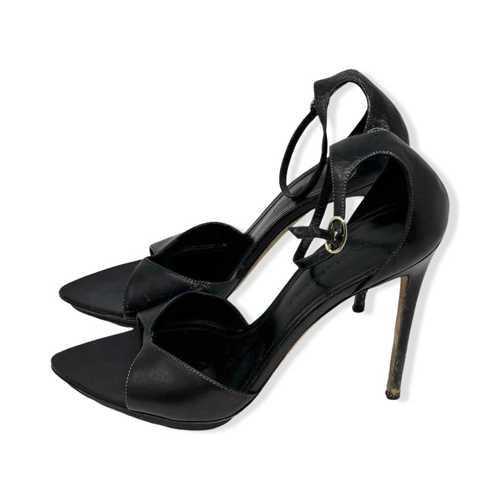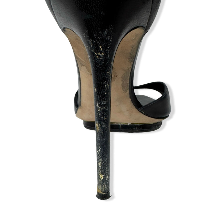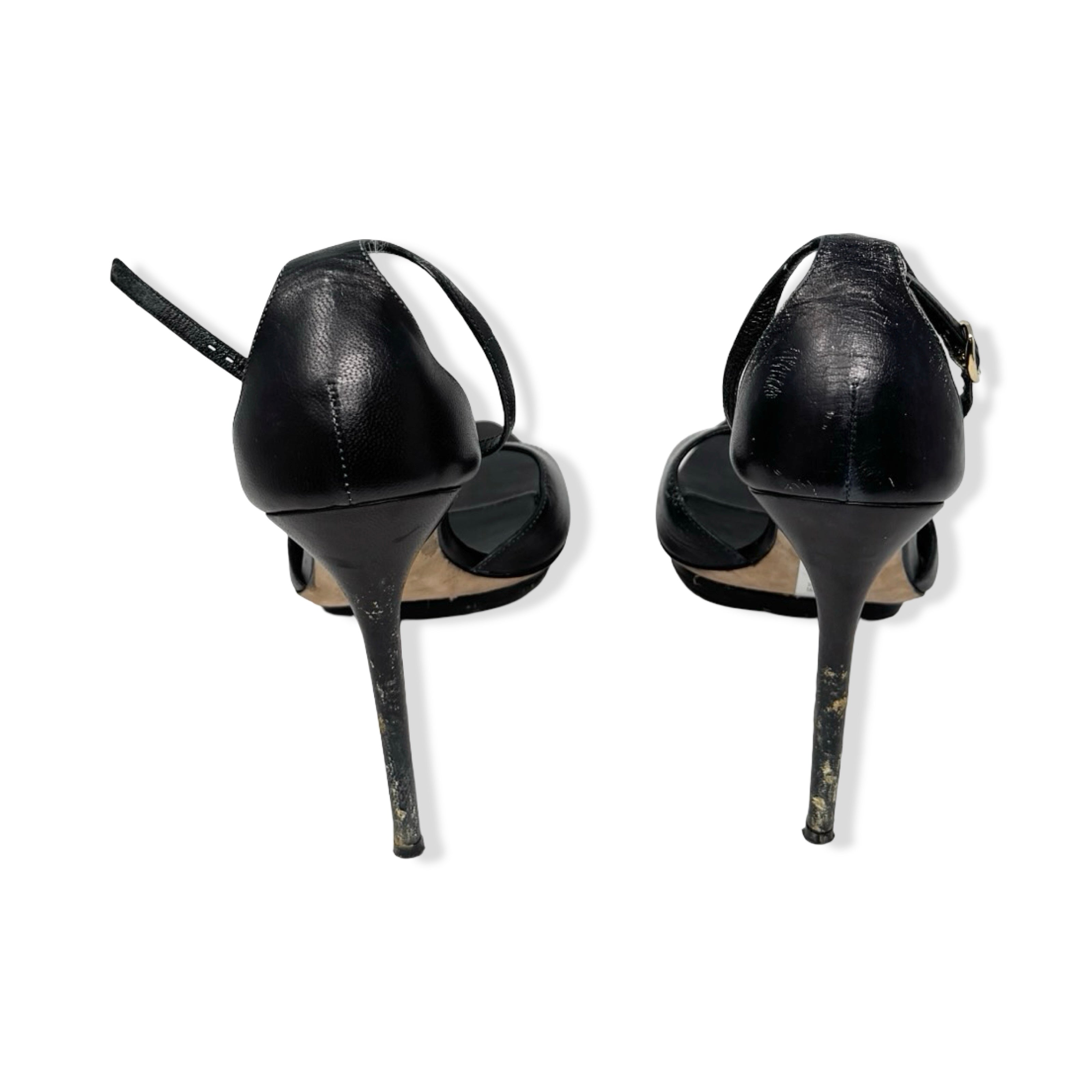 - Open toe heels with ankle strap. Signs of wear (pictured)
