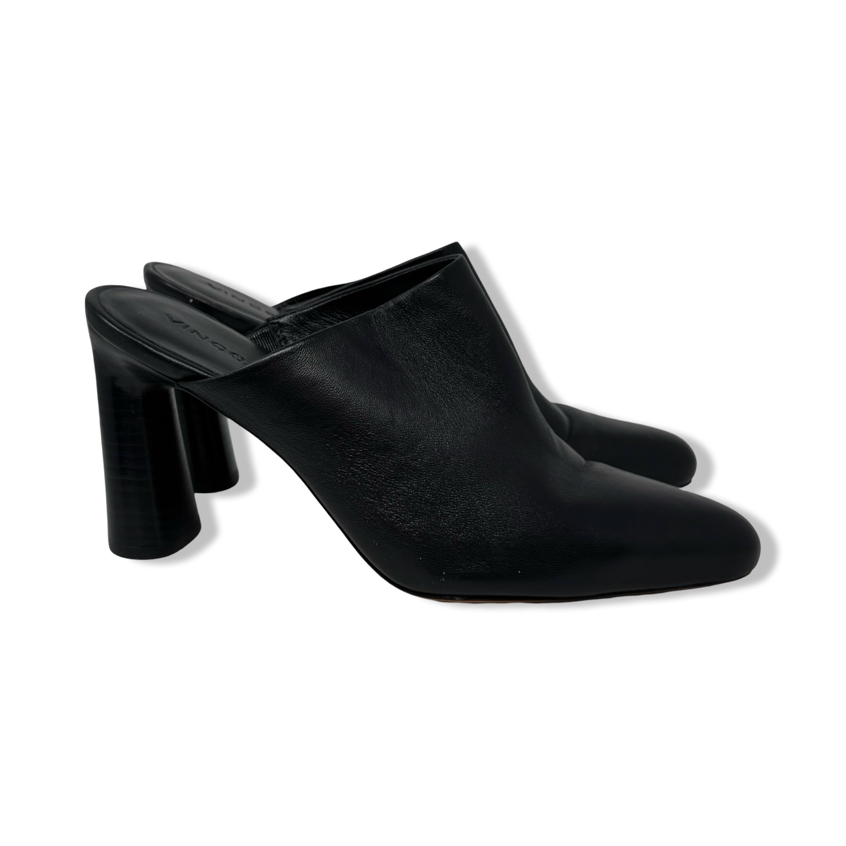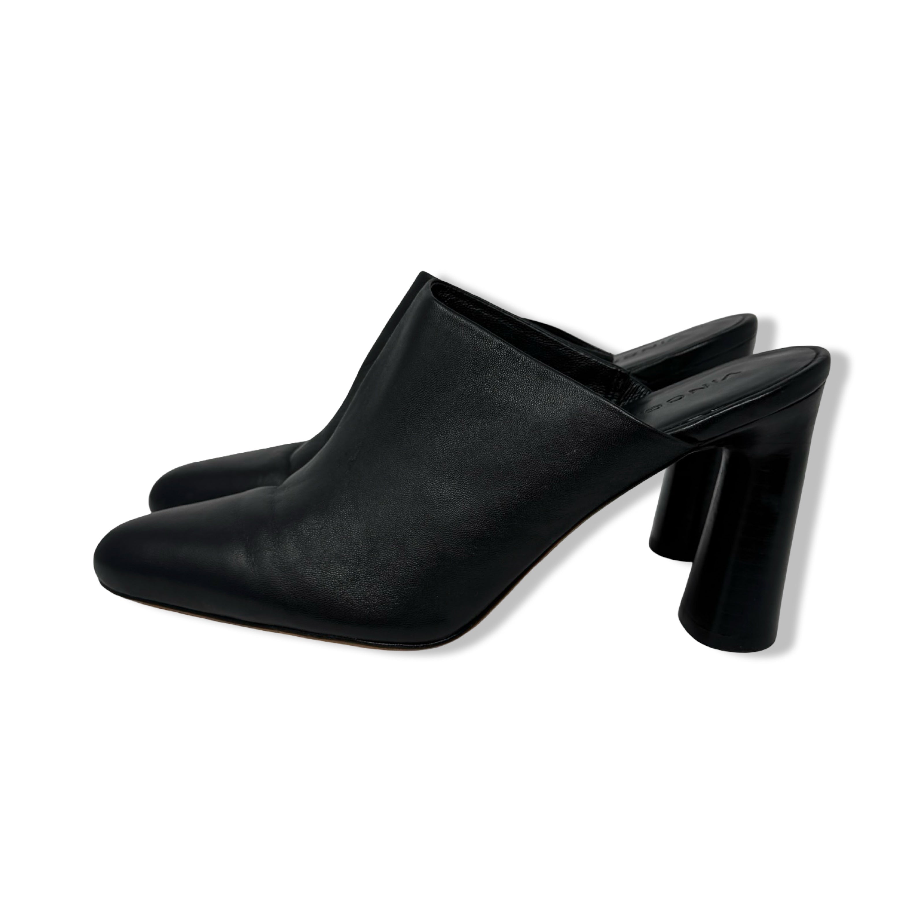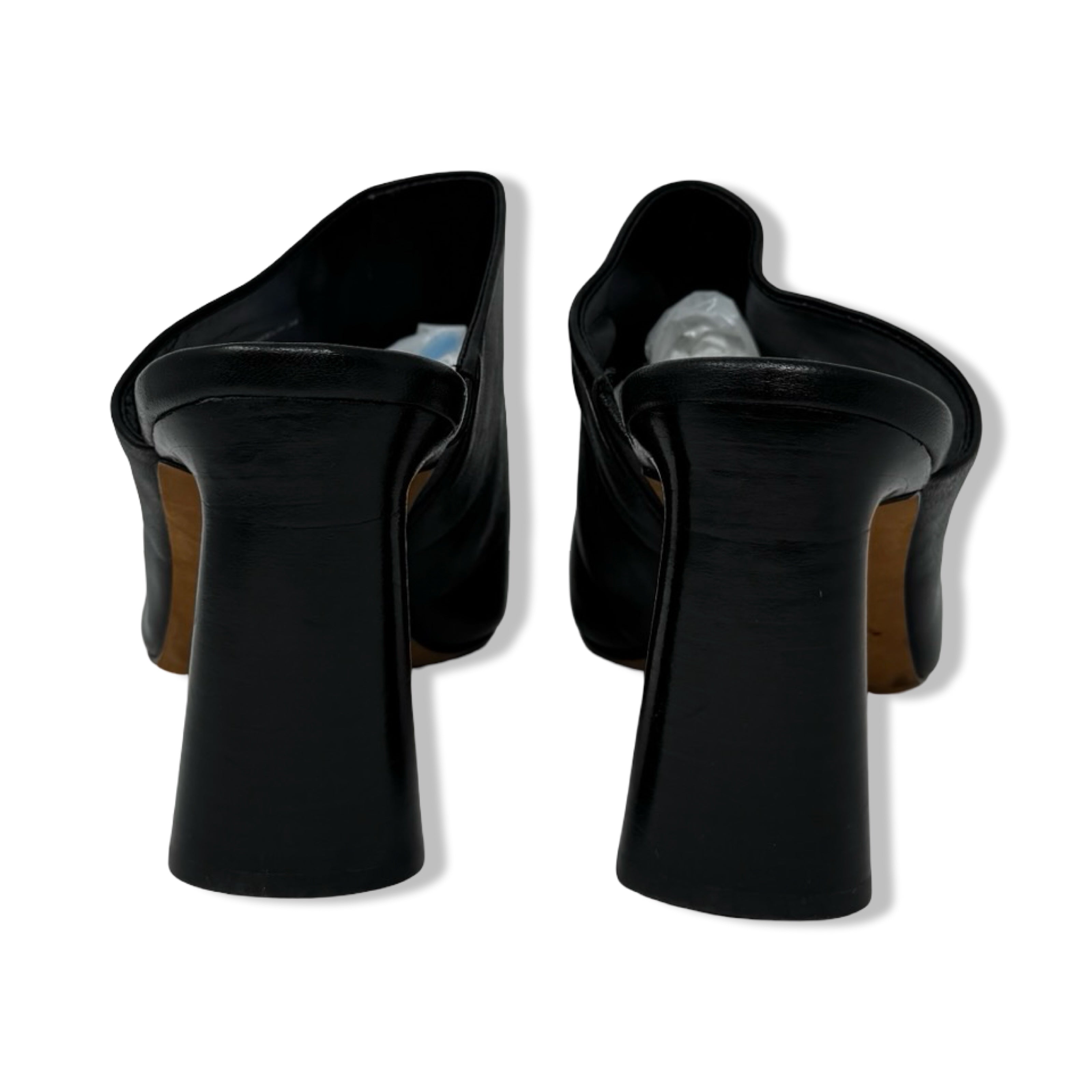 - Slip on mules with pointed toe and small elastic panel on inner side.