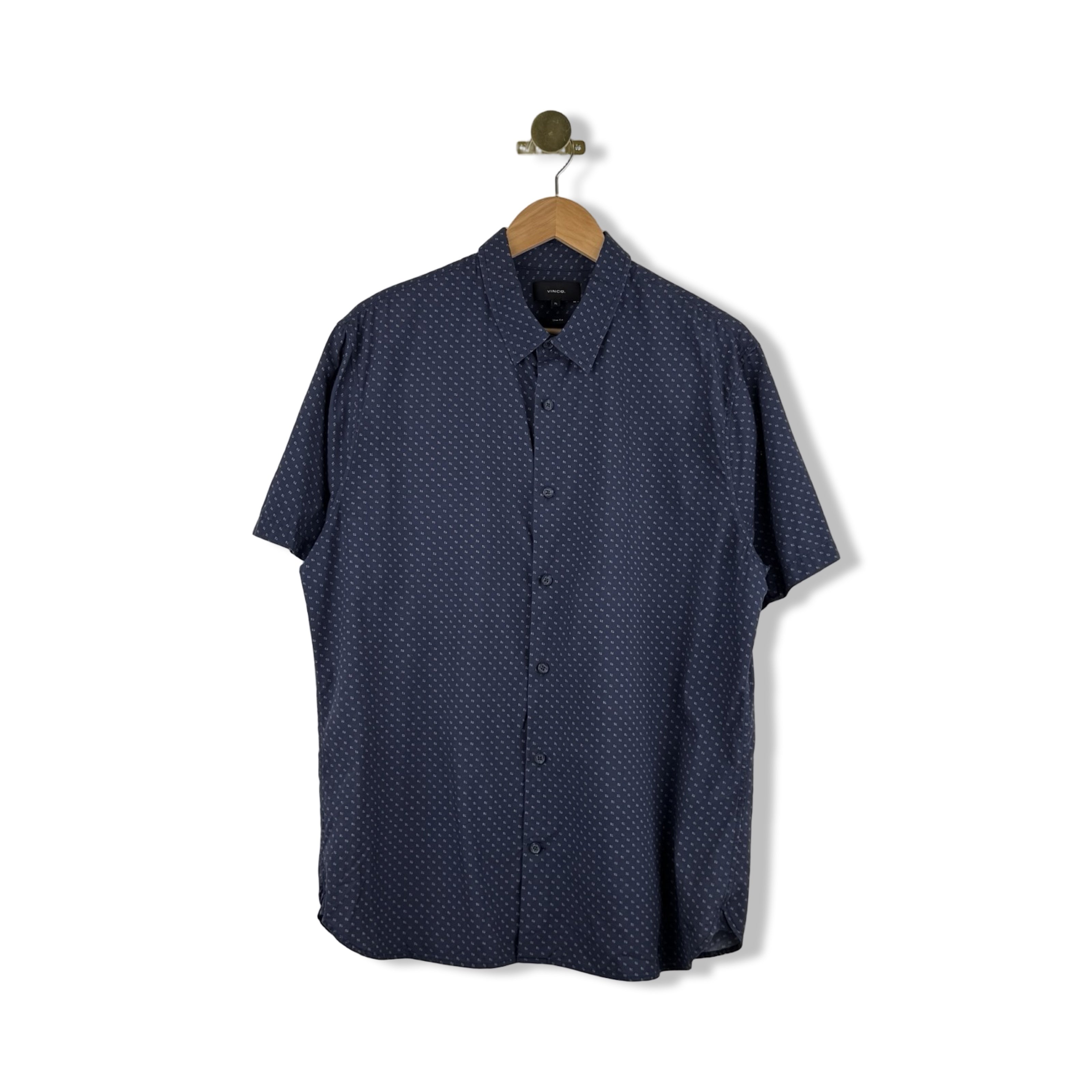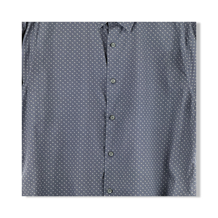 - Patterned, short sleeve, slim fit button-down shirt