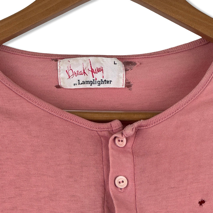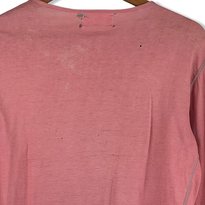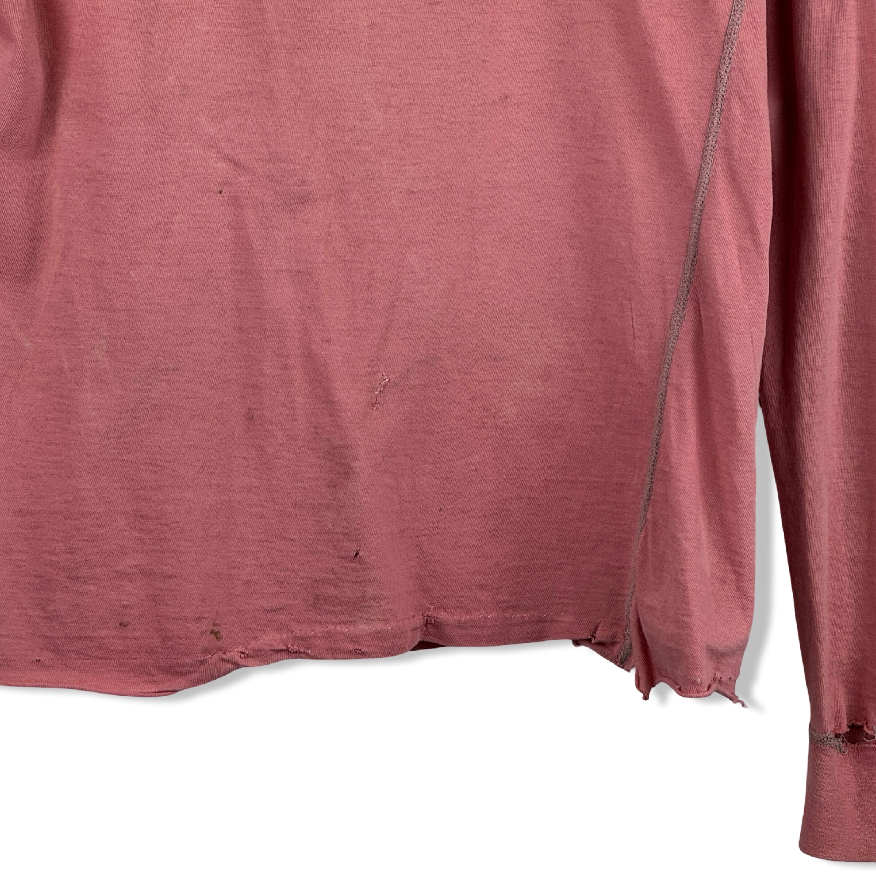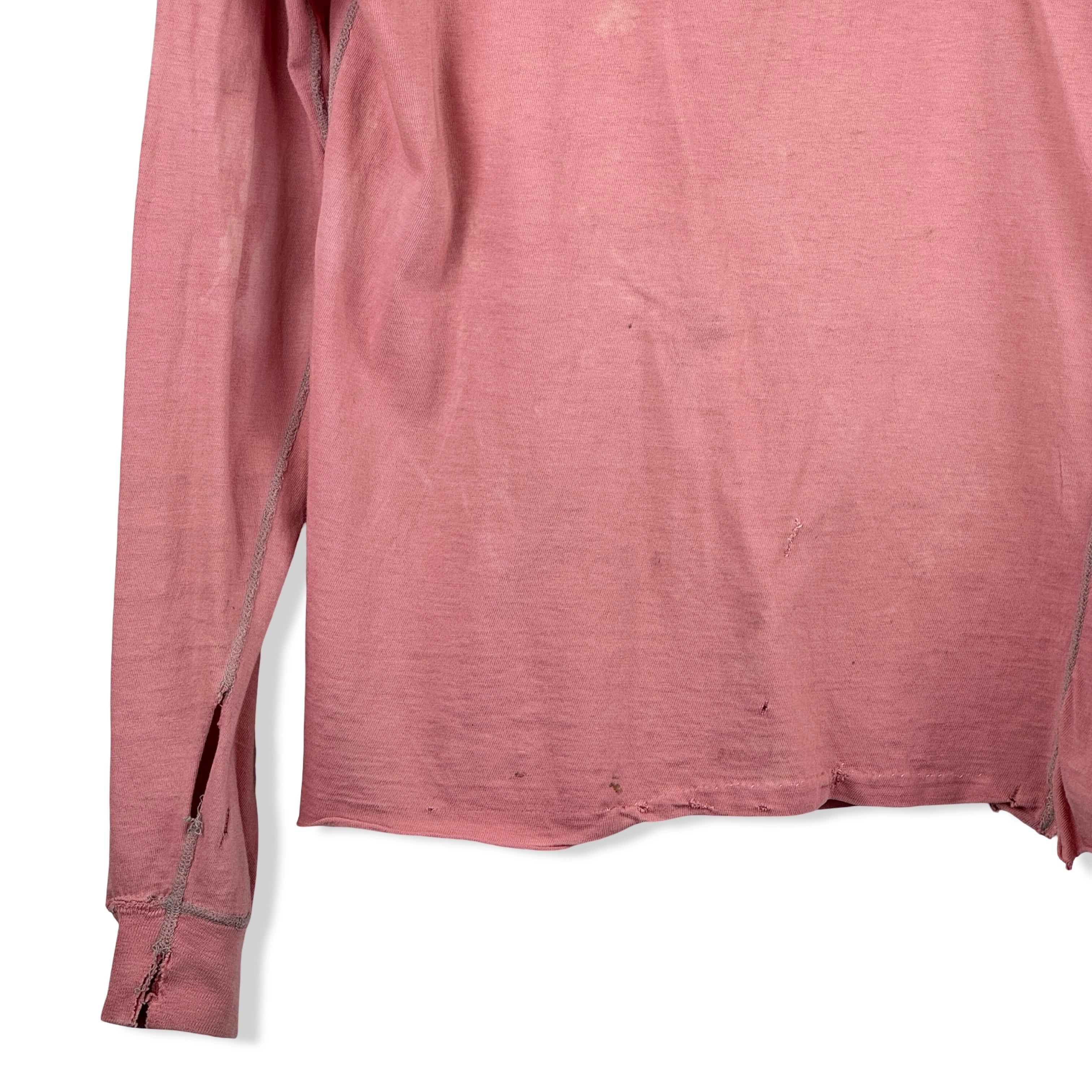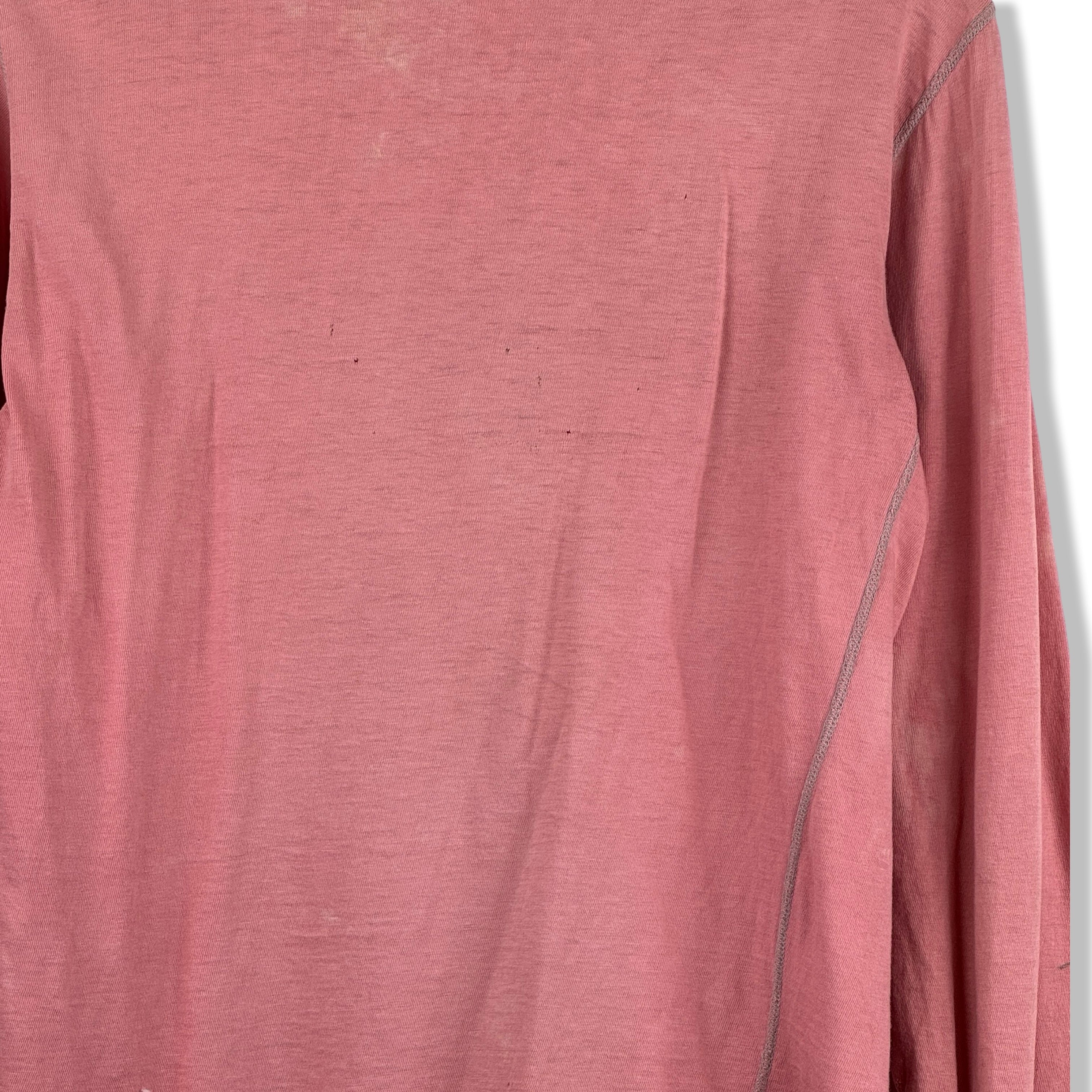 - Long sleeve lightweight top with half button up placket and contrast stitching. Labeled size Large, please check measurements for reference. Signs of heavy wear throughout (pictured)