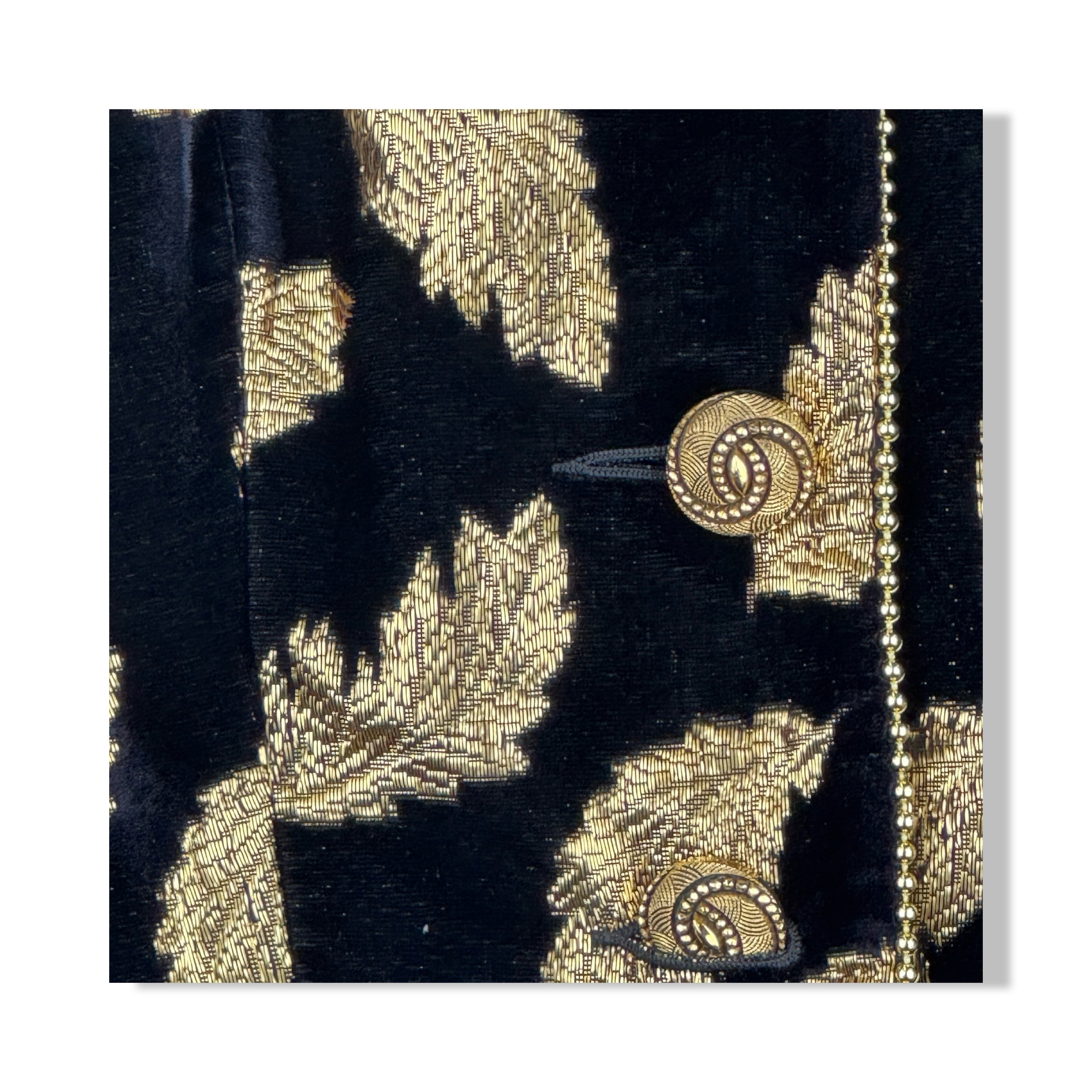 - Cropped button up blazer with metallic leaves