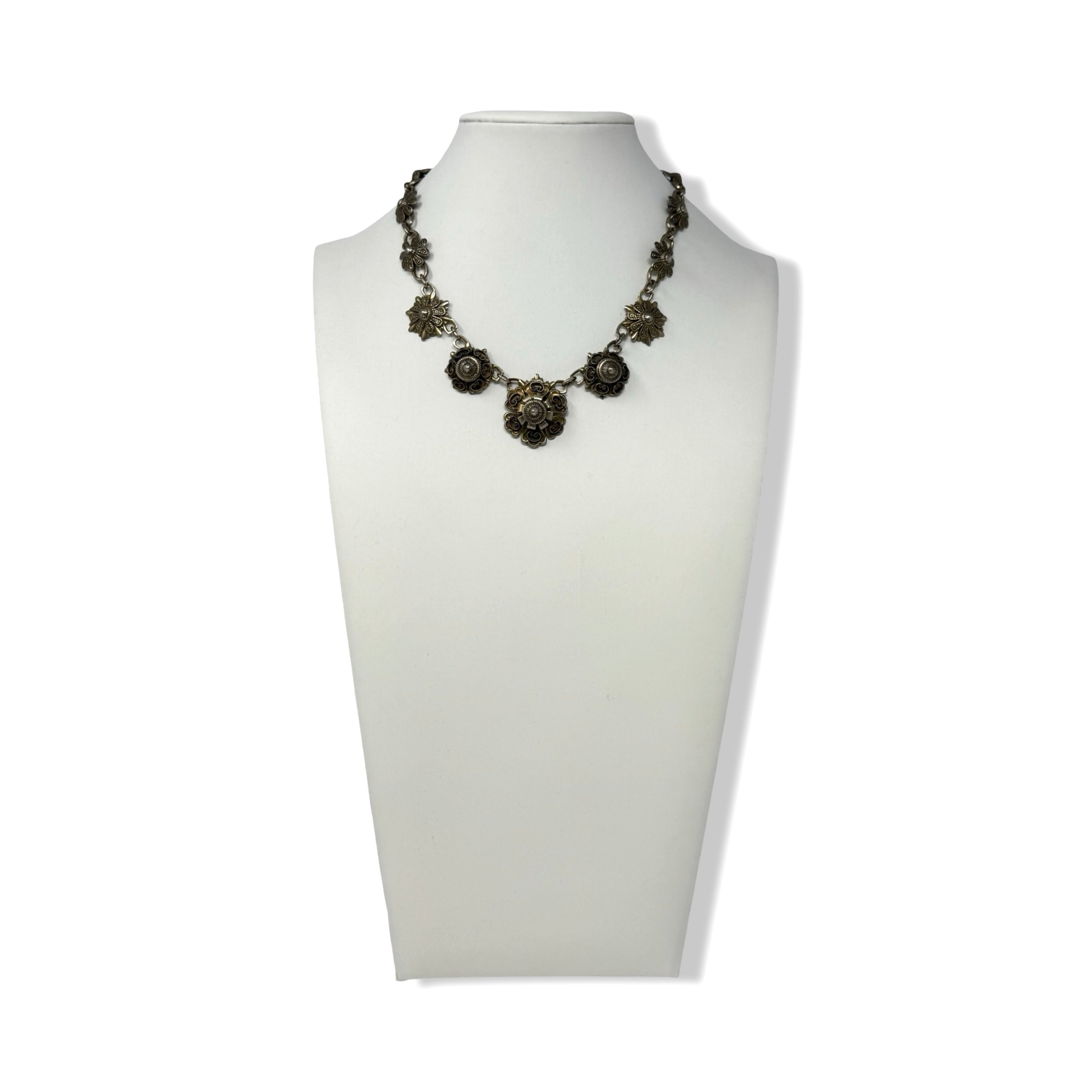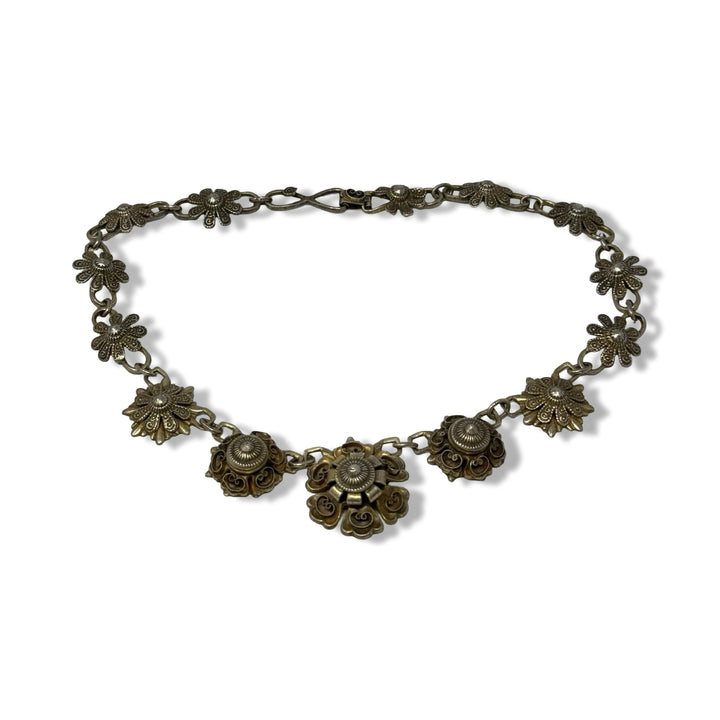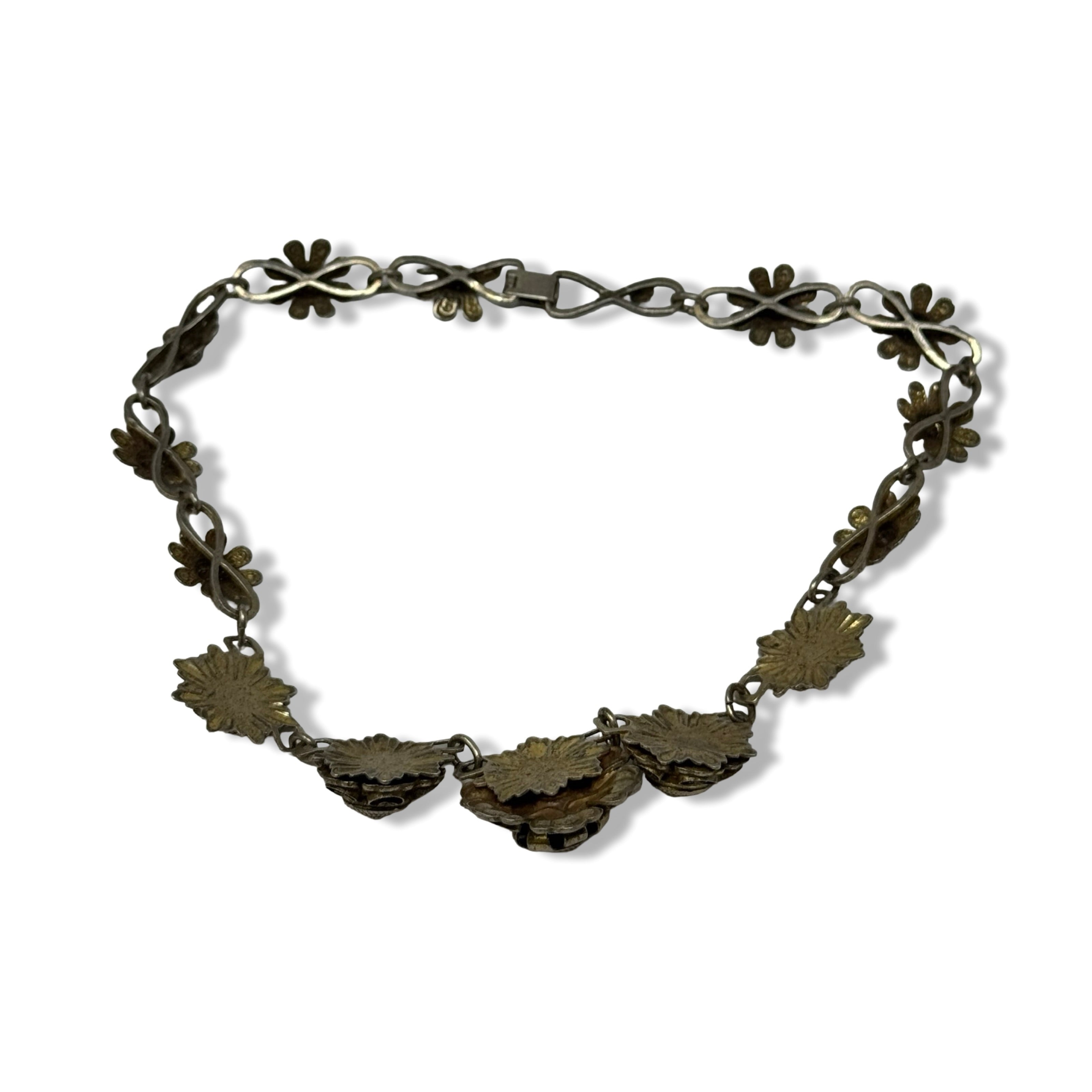 - Floral necklace with box clasp. Signs of wear/damage (pictured)