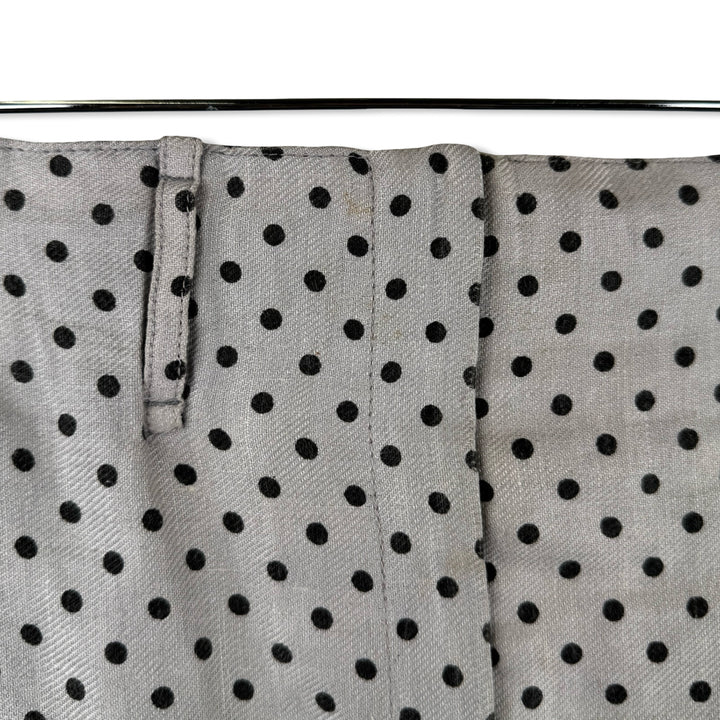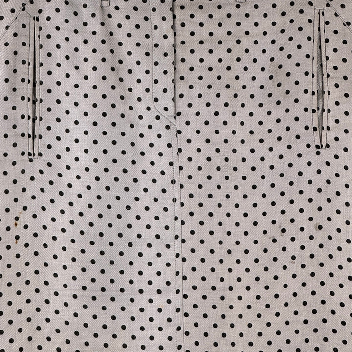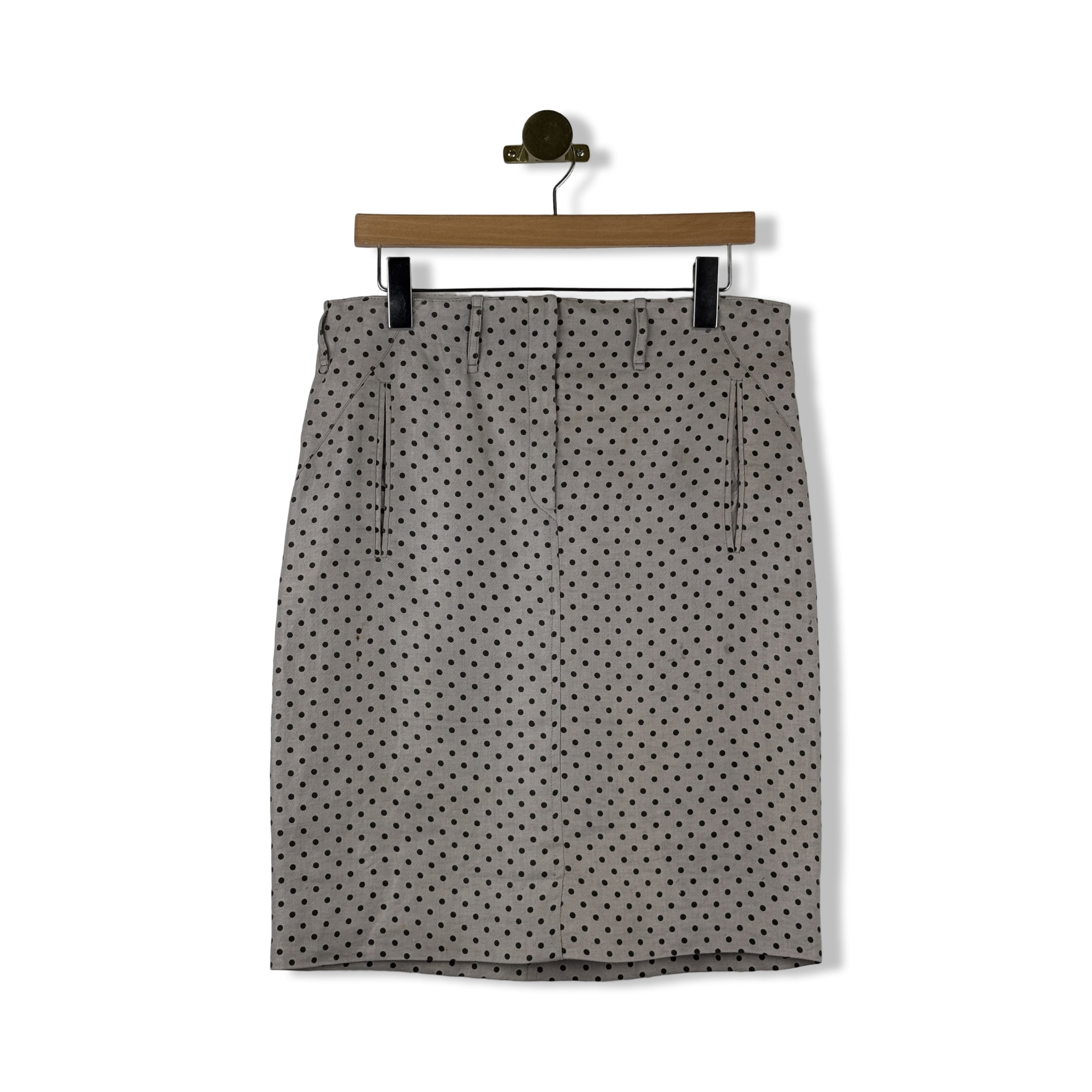 - Pull on skirt with belt loops on waistband, zip closure on center, front pockets and a polka dot pattern throughout.