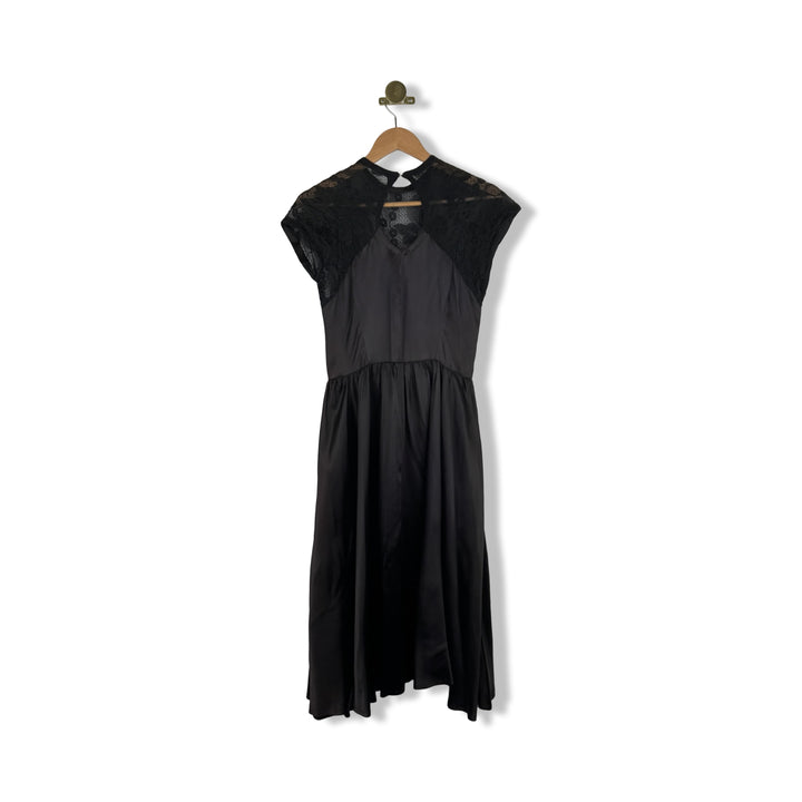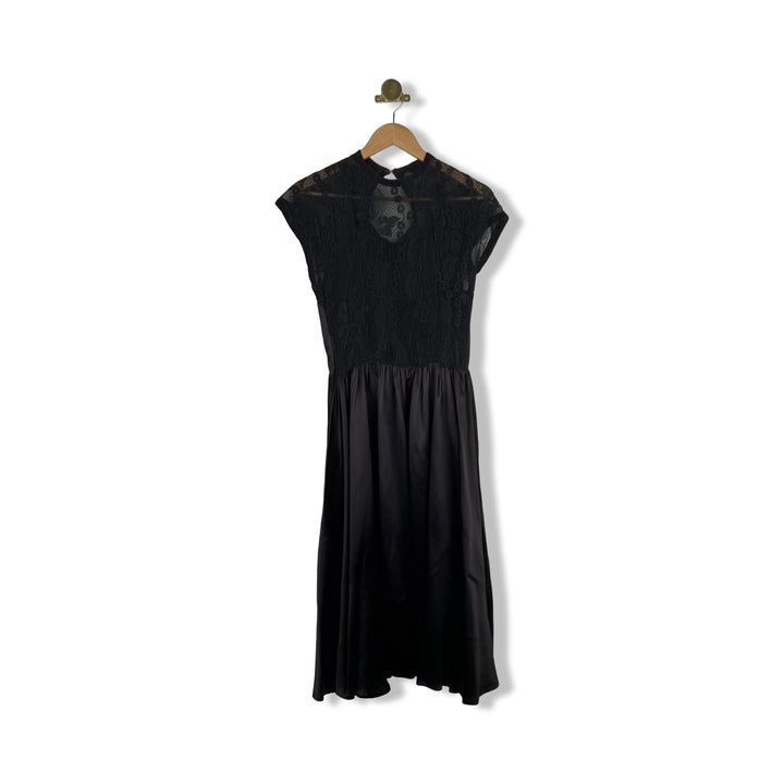 - Cap sleeve lace bodice fit and flare dress. Size not listed, looks like a size Small. Please check measurements