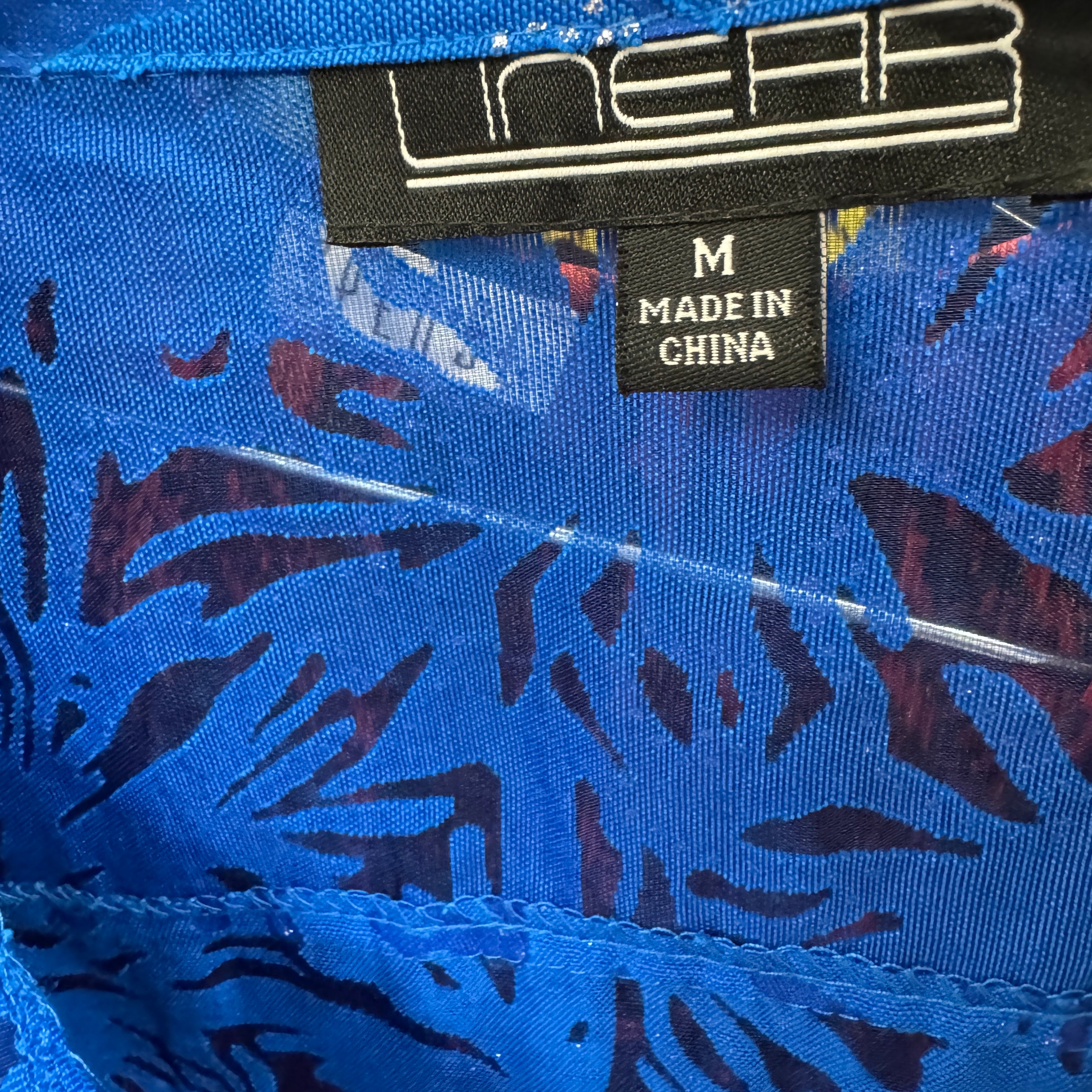 - Long sleeve sheer top with button up closure and chest pockets Signs of discoloration (pictured)