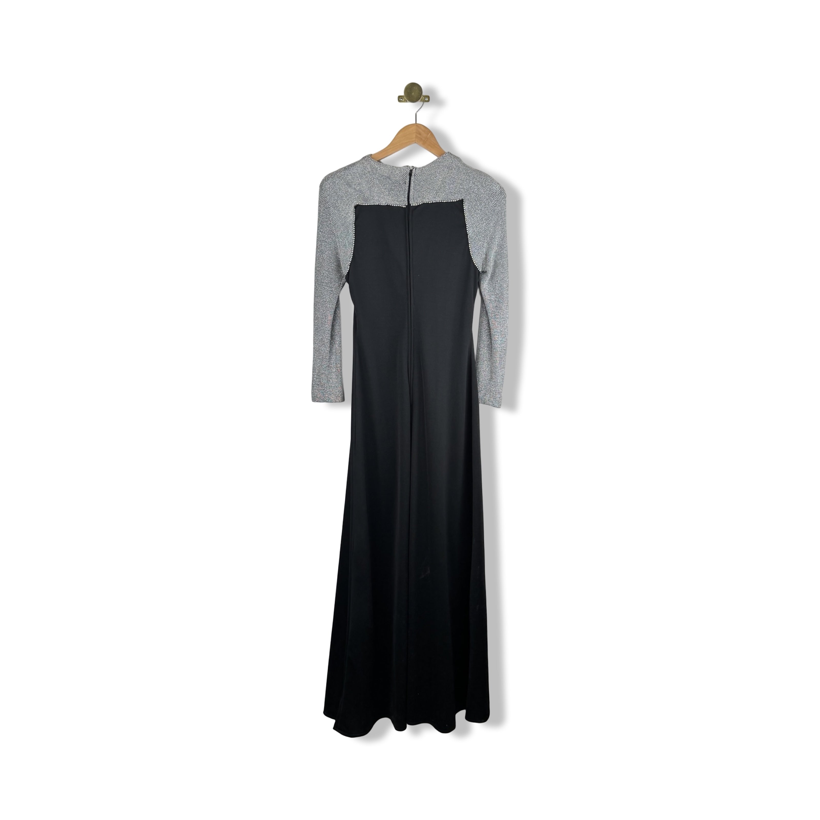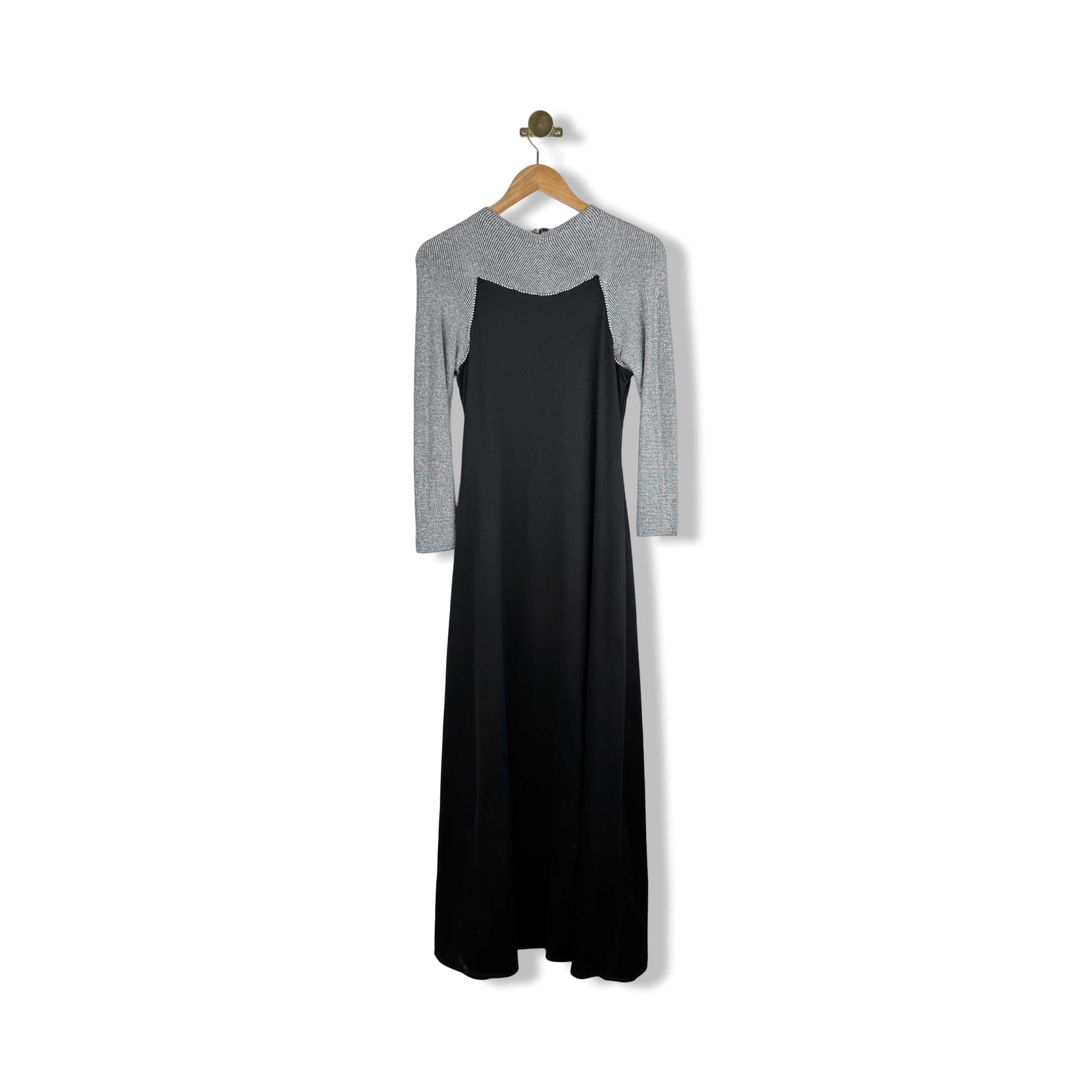 - Rhinestone and metallic knit maxi dress. Size not listed, looks like size Medium. Please check measurements