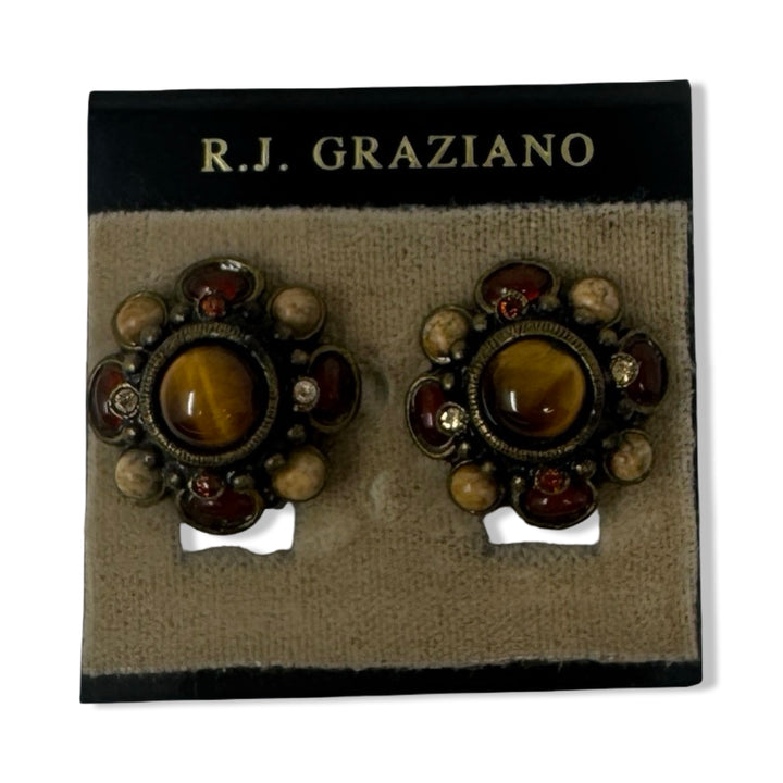 Vintage R.J. Graziano Tigers Eye Clip On Earrings