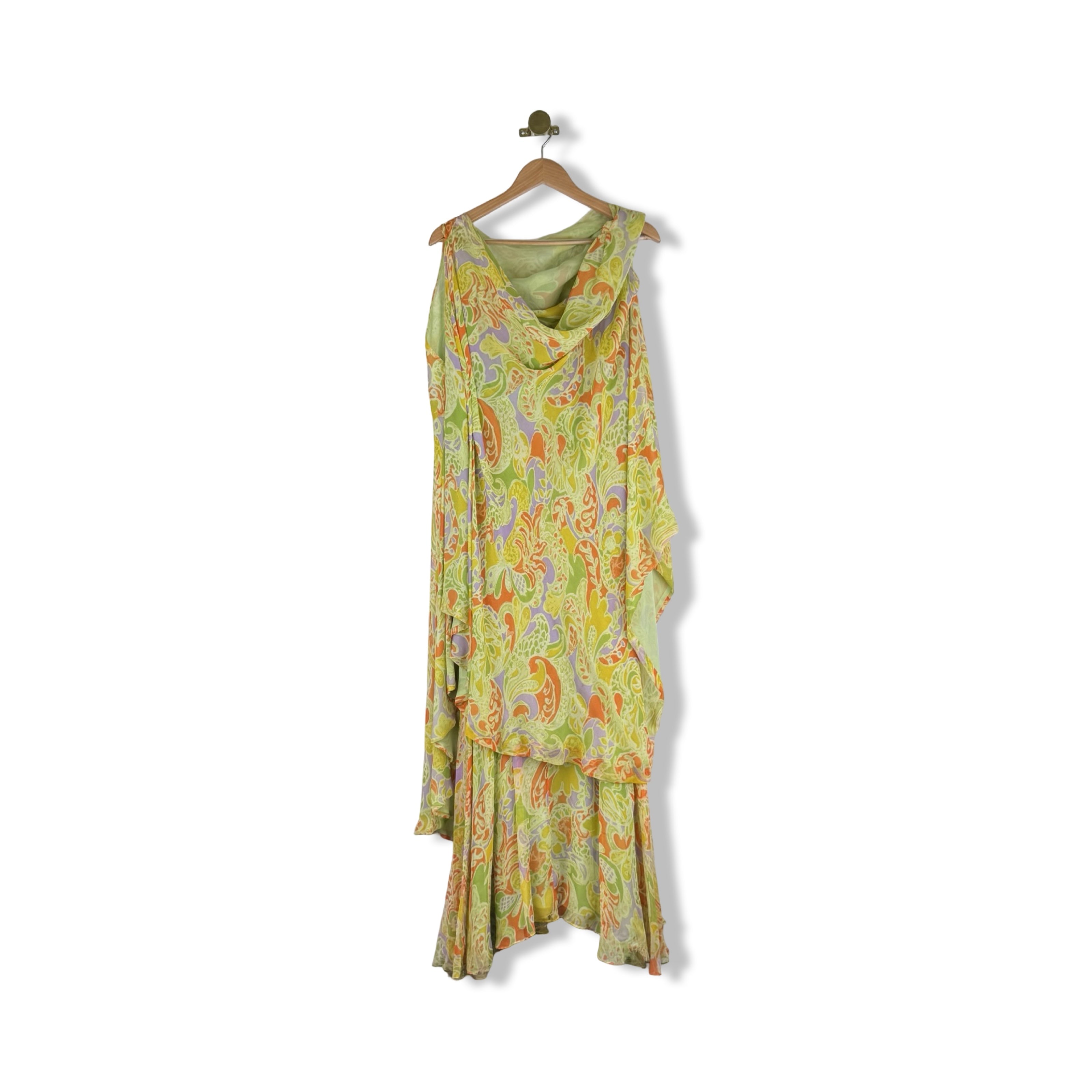 Vintage Richiliene Paisley Maxi Dress With Matching Cape