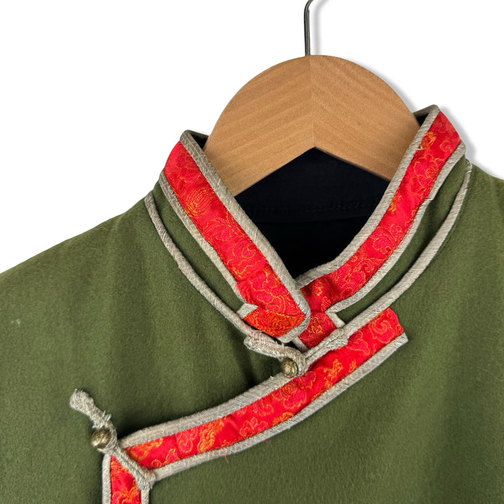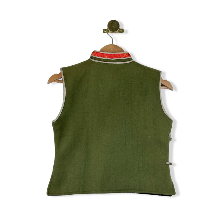 - Sleeveless traditional top with floral trim detail and asymmetrical button closure. Missing size label, looks like a size Small. Please check measurements for reference.