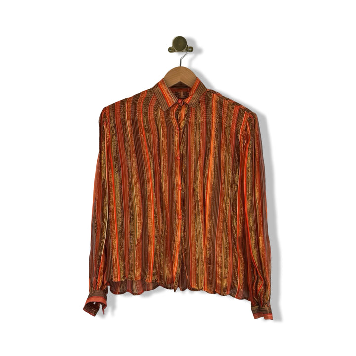 - Striped blouse with metallic threads. Size not listed, Looks like size Small. Please check measurements
