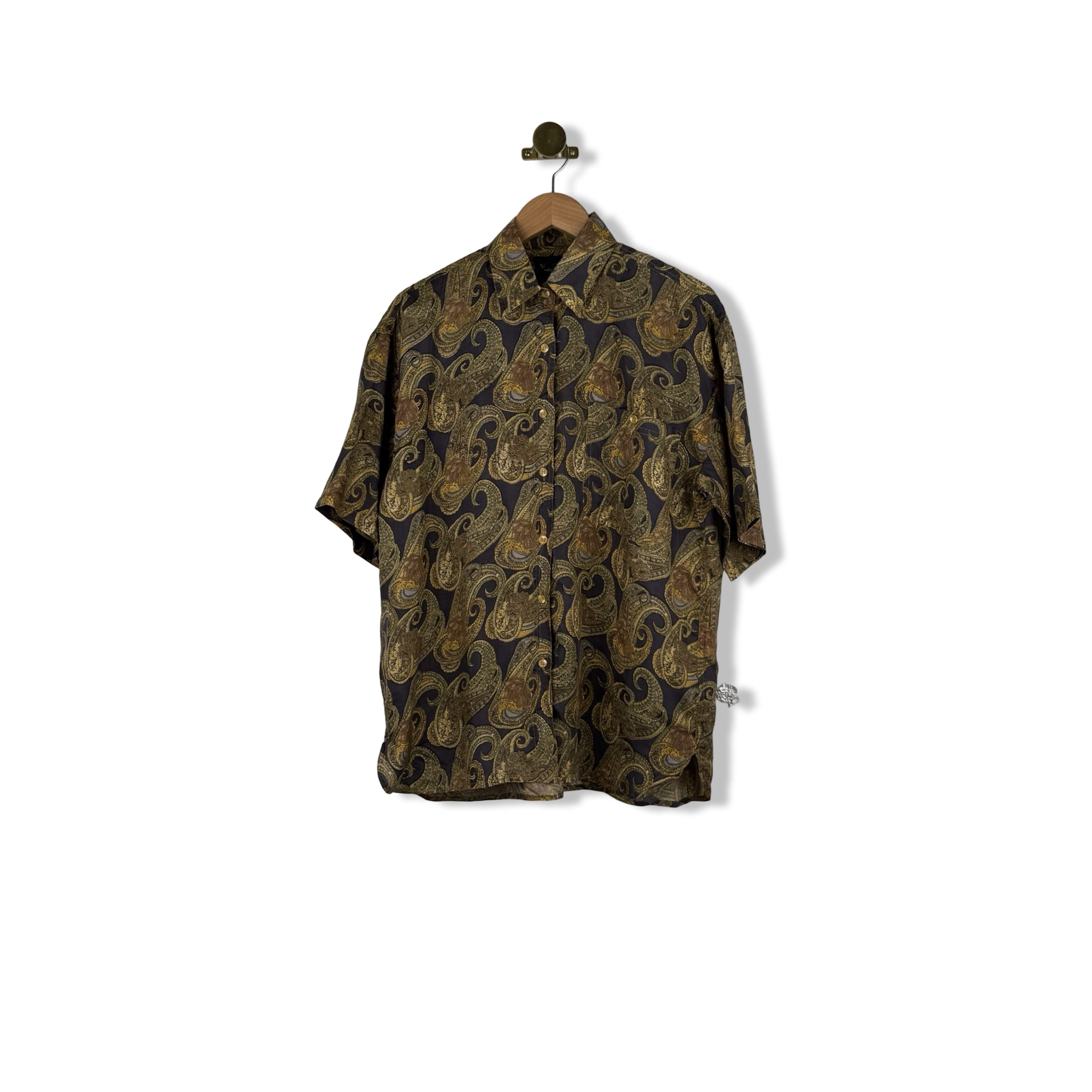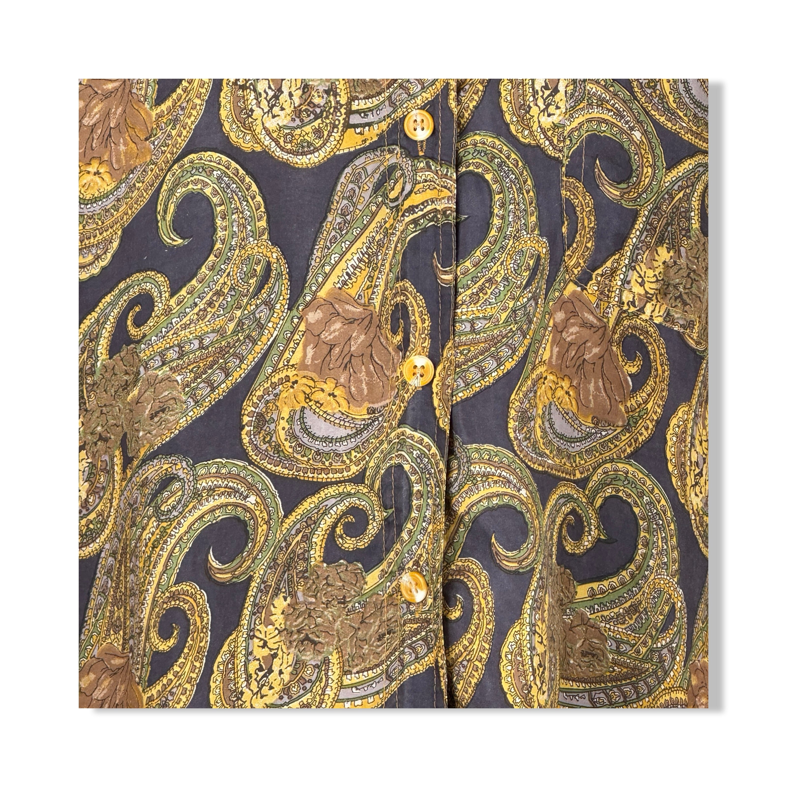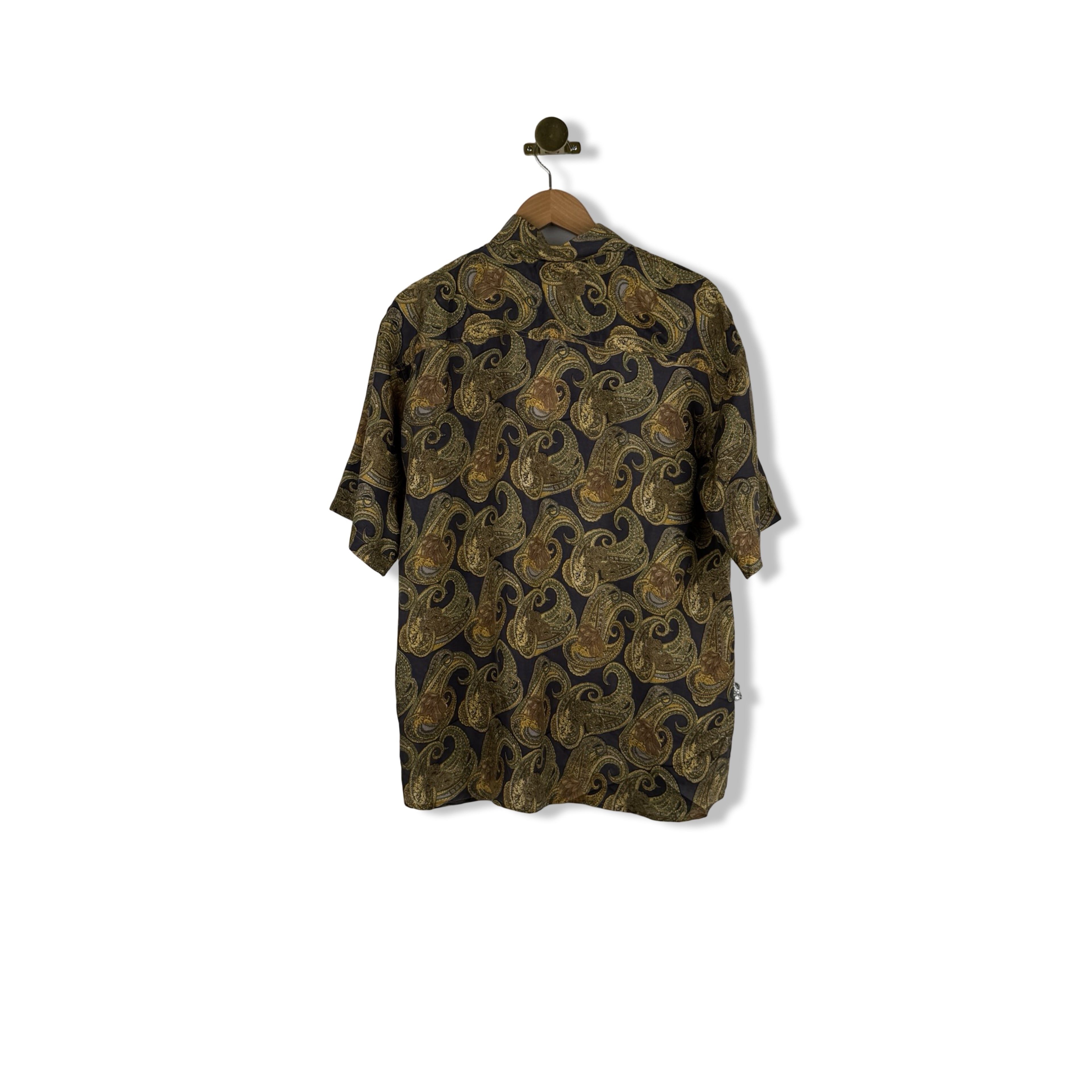 - Button up short sleeve shirt with chest pocket, curved hem and paisley print throughout.