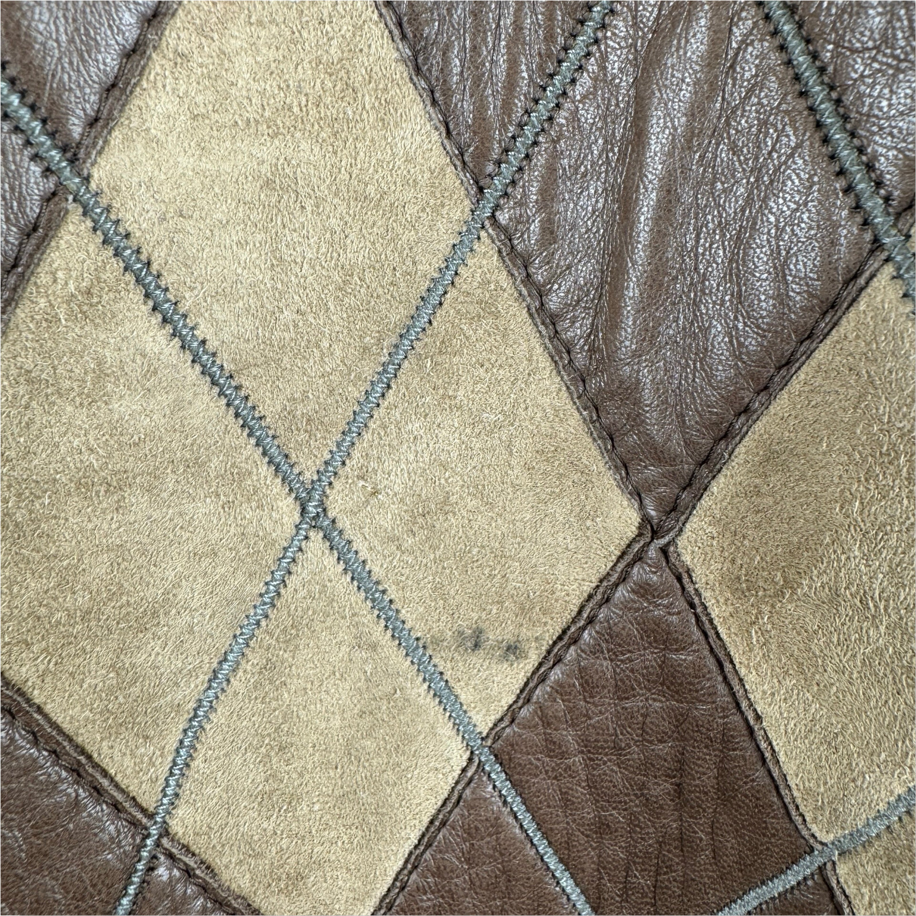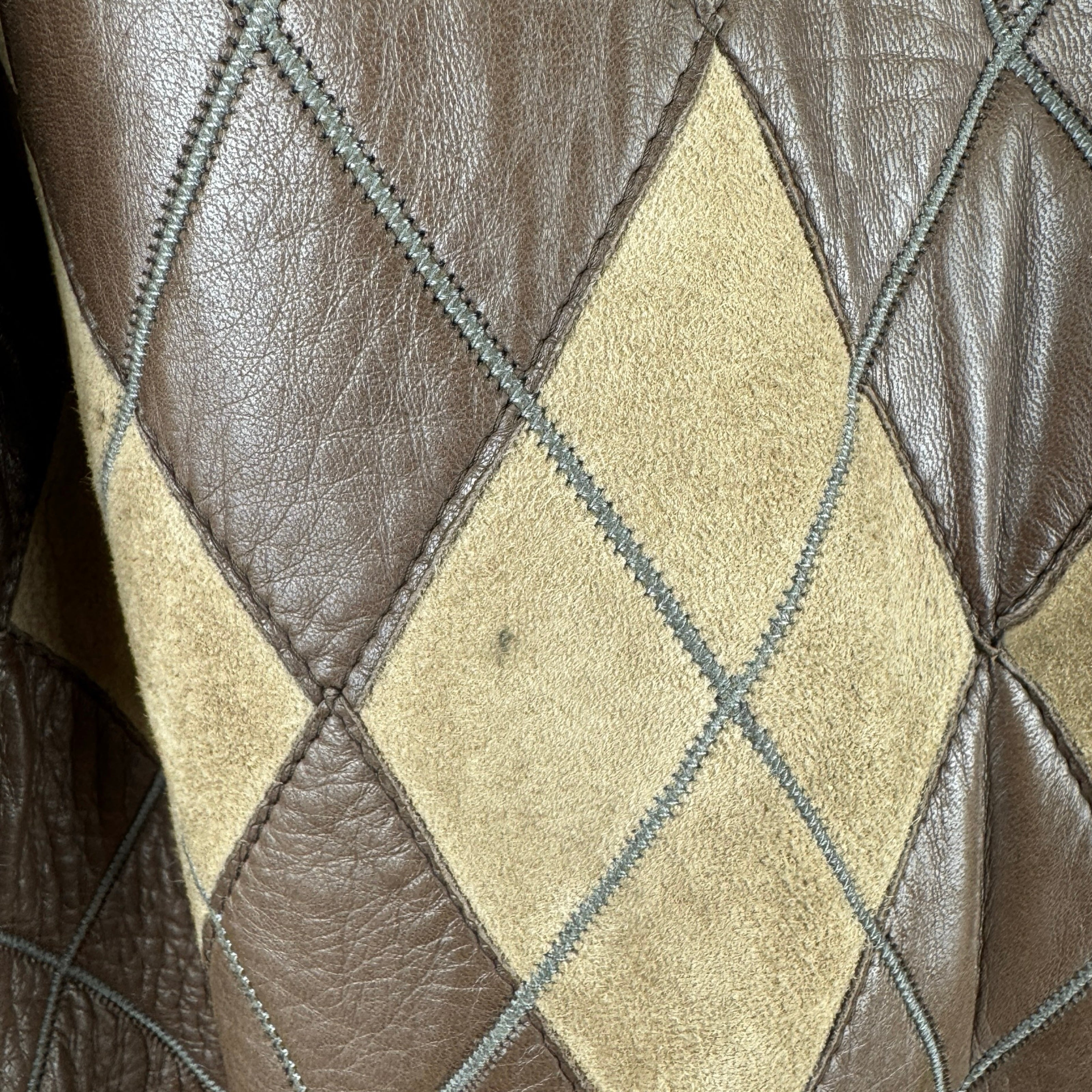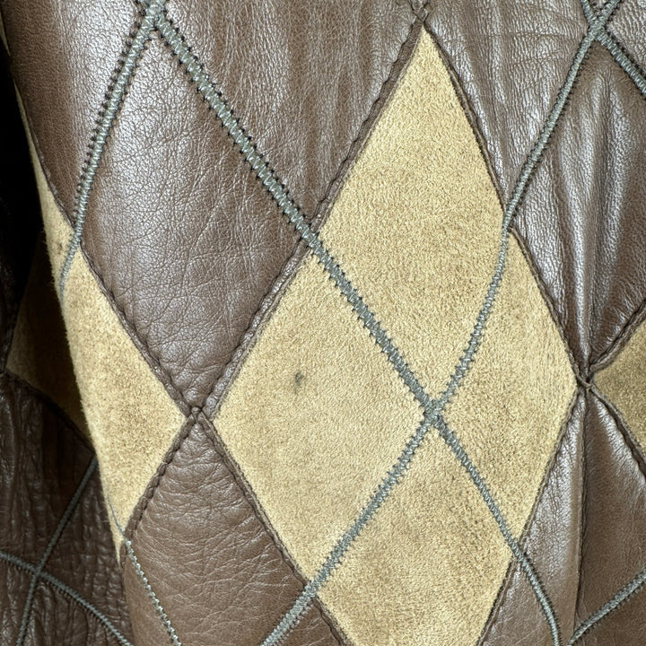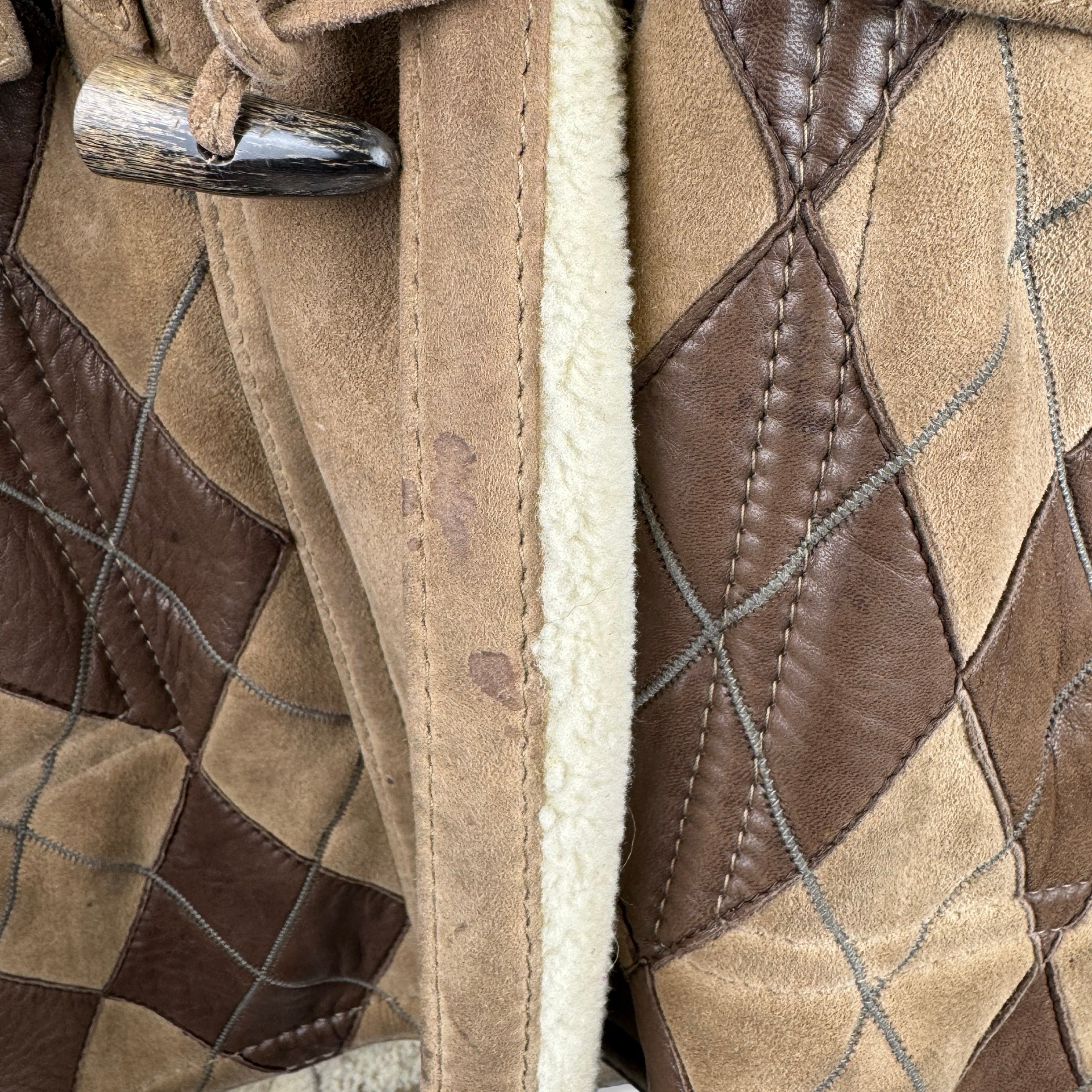- Harlequin patchwork with horn toggle and zip closure. Size not listed. Looks like size Medium. Please check measurments
