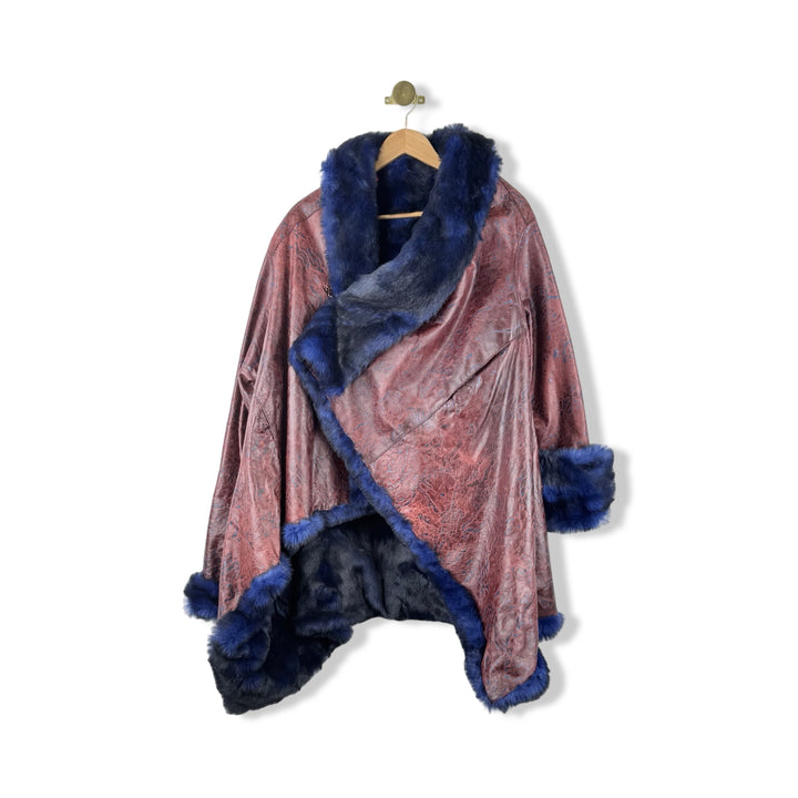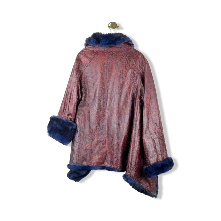 - Faux fur lined asymmetrical hook and eye closure leather coat