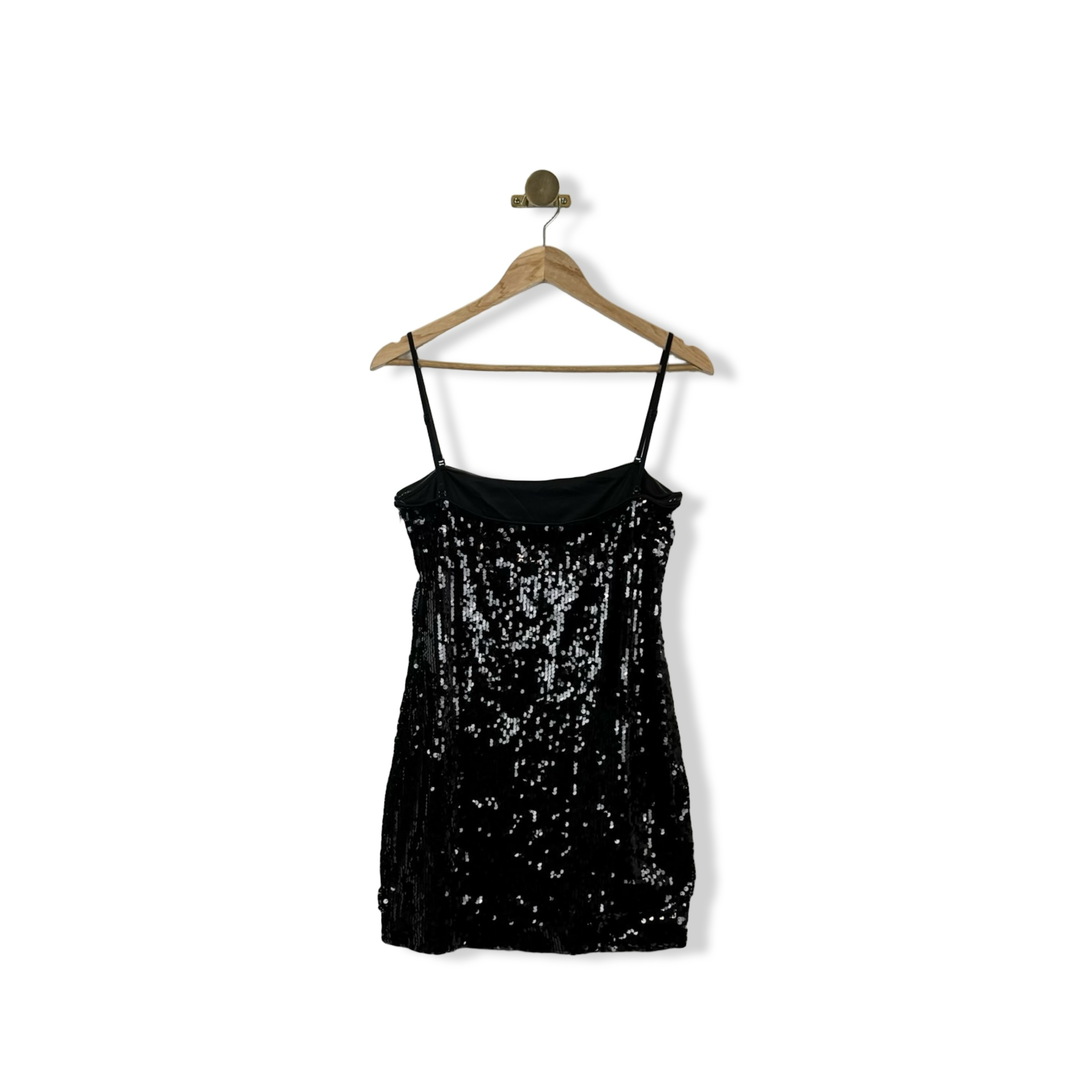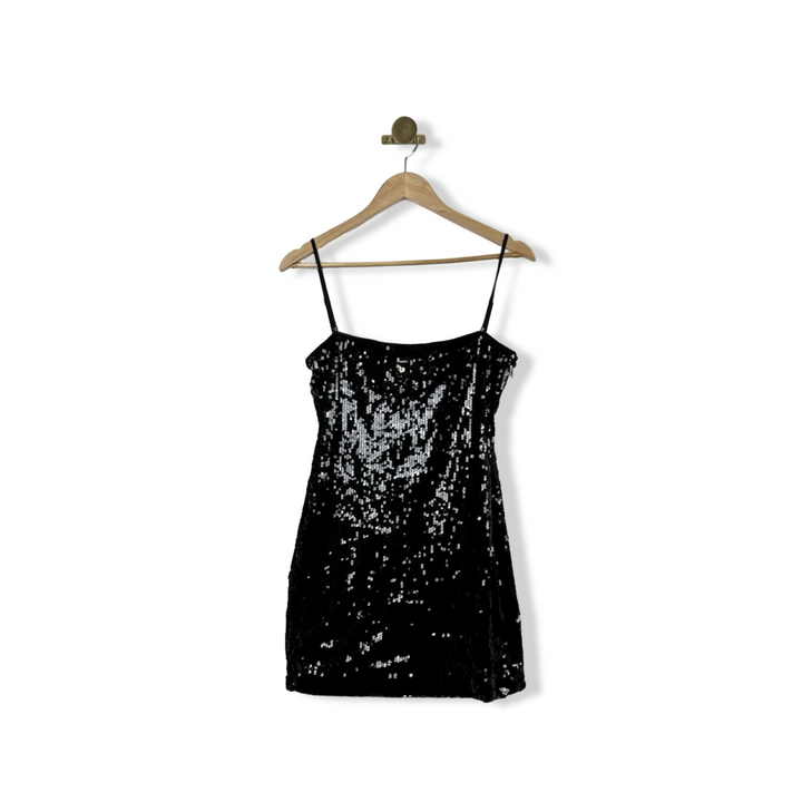 - Sequined spaghetti strap slip dress with side zip