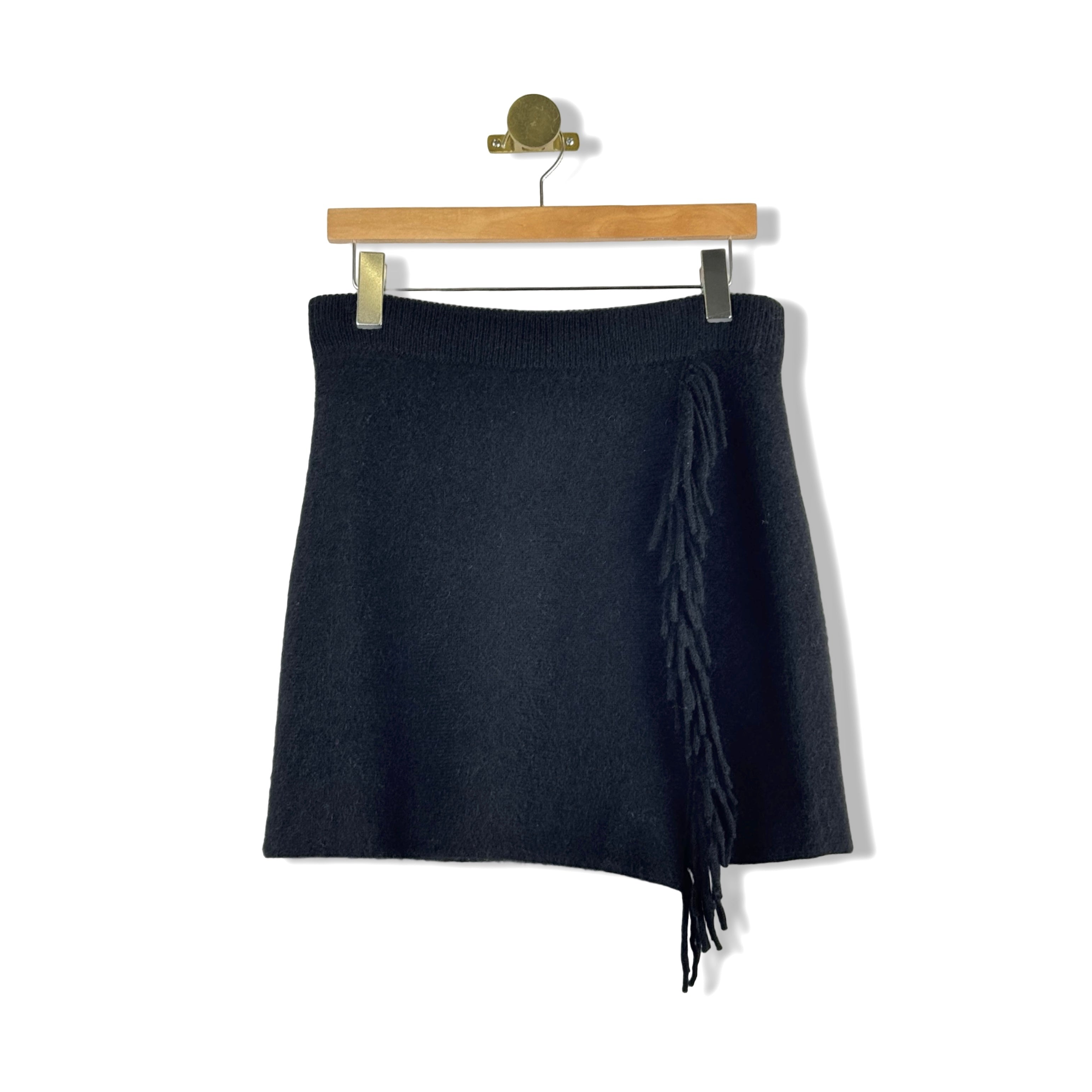 White + Warren Brushed Cashmere Fringe Mini Skirt