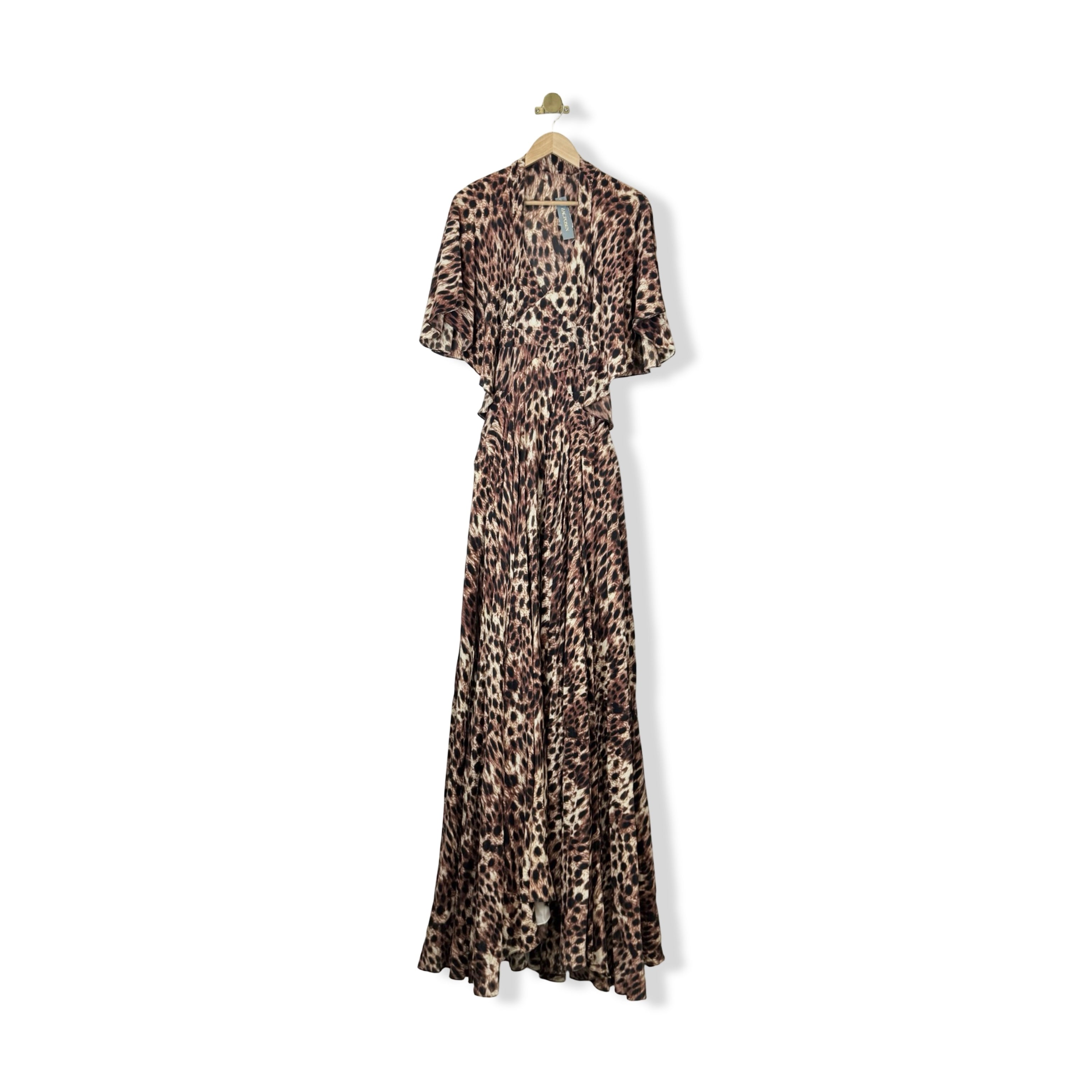 - Flutter sleeve leopard print maxi dress. Missing size label, looks like an X-Small. Please check measurements for reference.