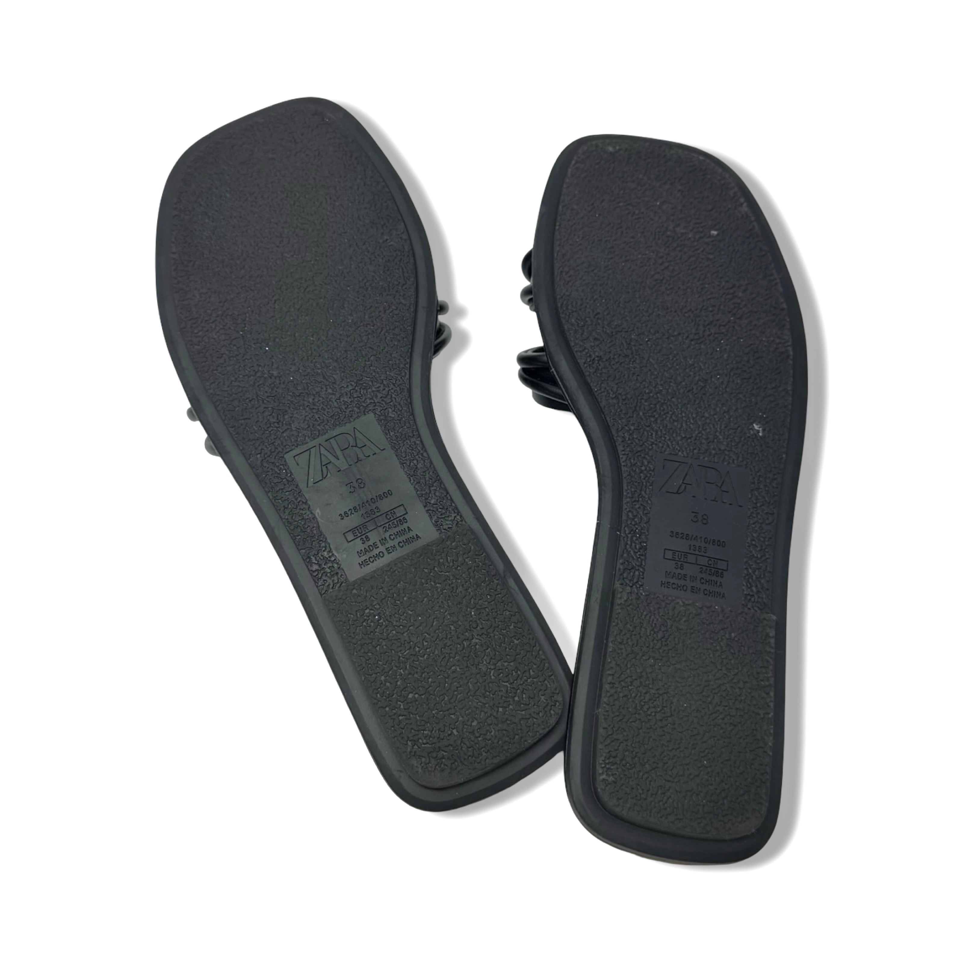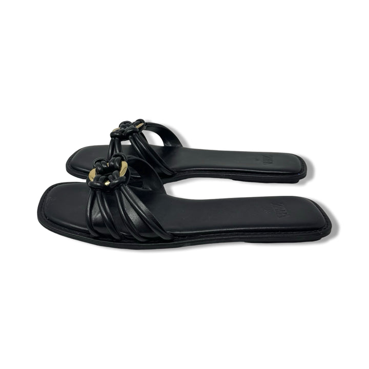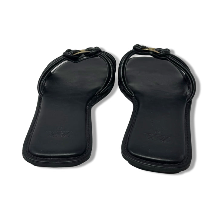 - These slip-ons feature elegant gold ring accents and sturdy cable straps, ensuring a secure and stylish fit for all-day wear. Upgrade your summer wardrobe and make a statement with these must-have sandals!. Labeled size 38; approx. size US 8